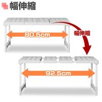 ●幅方向は自由に伸縮(80.5-92.5cm)でき、内部ストッパー機能で抜け落ちも防止