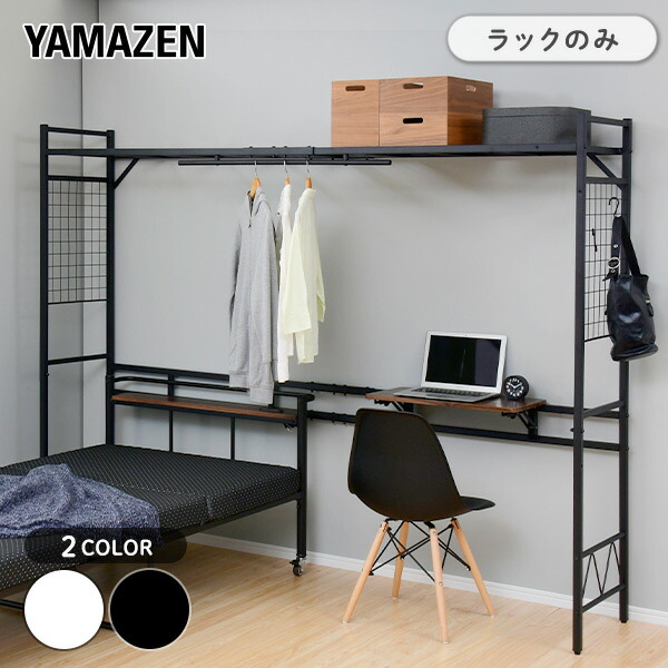 ベッド上 収納ラック ベッドサイドラック (テーブル・ハンガーバー・上棚付き) ※ベッドは別売り ハンガーラック ロフト 棚 収納ラック 山善