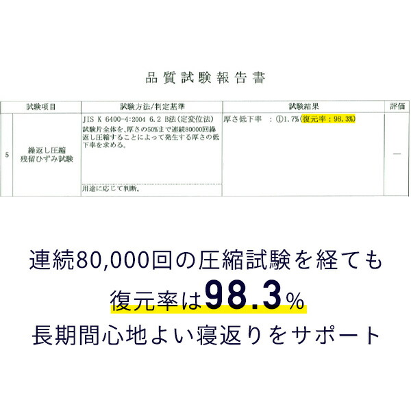 ●JIS基準に準拠する試験において高水準を記録した反発力と、高密度、硬めの仕様