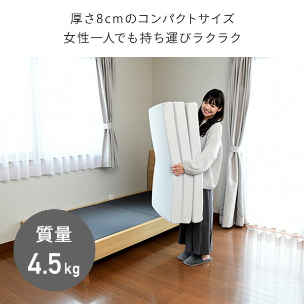 マットレス 高反発 三つ折り 厚さ8cm 抗菌生地