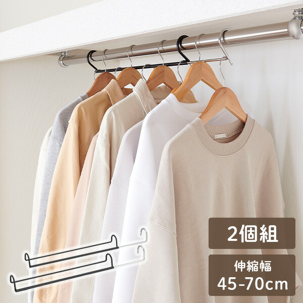 ダブル収納ハンガー 伸縮タイプ (伸縮幅45-70cm) 2台入り
