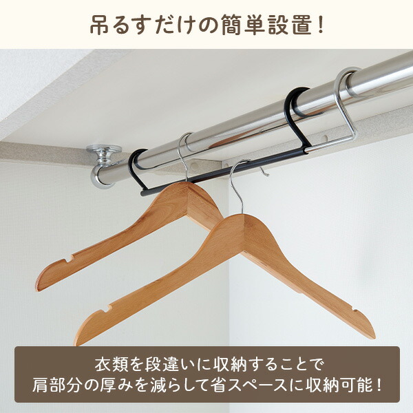 YAMAZEN ヤマゼン 山善 通販 ベルカ Belca ハンガー 収納ハンガー 衣類ハンガー 伸縮ハンガー 収納アップハンガー 収納力アップハンガー パイプハンガー ハンガーラック 衣類収納 収納 伸縮 段違い クローゼット 整理 省スペース 洋服 コート 衣替え 収納用品 収納力アップ 吊るすだけ 簡単設置 おしゃれ 2個組 2本組