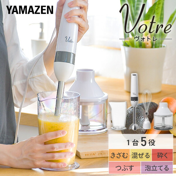 ミキサー ブレンダー ハンドブレンダー ハンディブレンダー 山善 YHBA-T120(W) 離乳食 ハンドミキサー ジューサー スムージー 離乳食 泡立て器 Votre