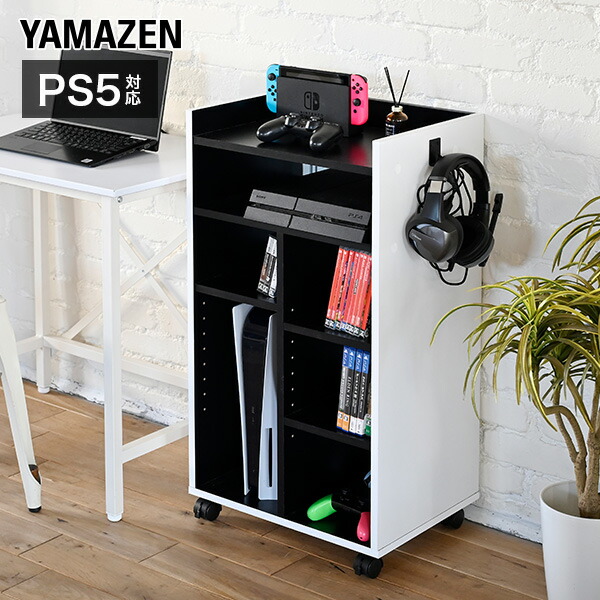 ゲーム機 収納ラック キャスター付き ゲームラック おしゃれ 幅45 コンパクト ヘッドホン 充電スタンド ルーター収納 棚 シェルフ 山善