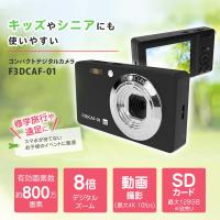 コンパクトデジタルカメラ 800万画素 軽量93g デジタル8倍ズーム 静止画 動画 2.7インチ液晶画面 F3DCAF-01 ブラック Fieldthree デジカメ WEBカメラ