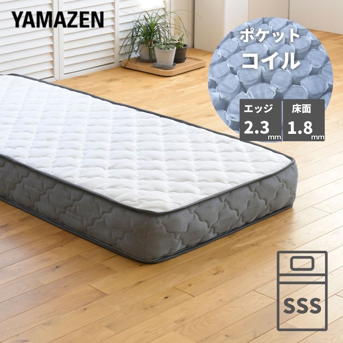 マットレス ポケットコイル 厚み20cm セミシングルショート 山善