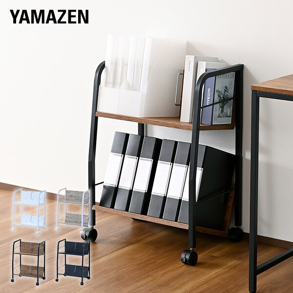 YAMAZEN ヤマゼン 山善 通販 ファイルワゴン ファイルラック ファイル収納 マガジンラック ブックシェルフ 本棚 絵本棚 絵本収納 収納棚 整理棚 サイドワゴン サイドラック サイドチェスト ワゴン ラック 斜め 斜め棚 傾斜棚 木棚 2段 二段 キャスター付き S5G69 S5G72 S5G71 S5G70