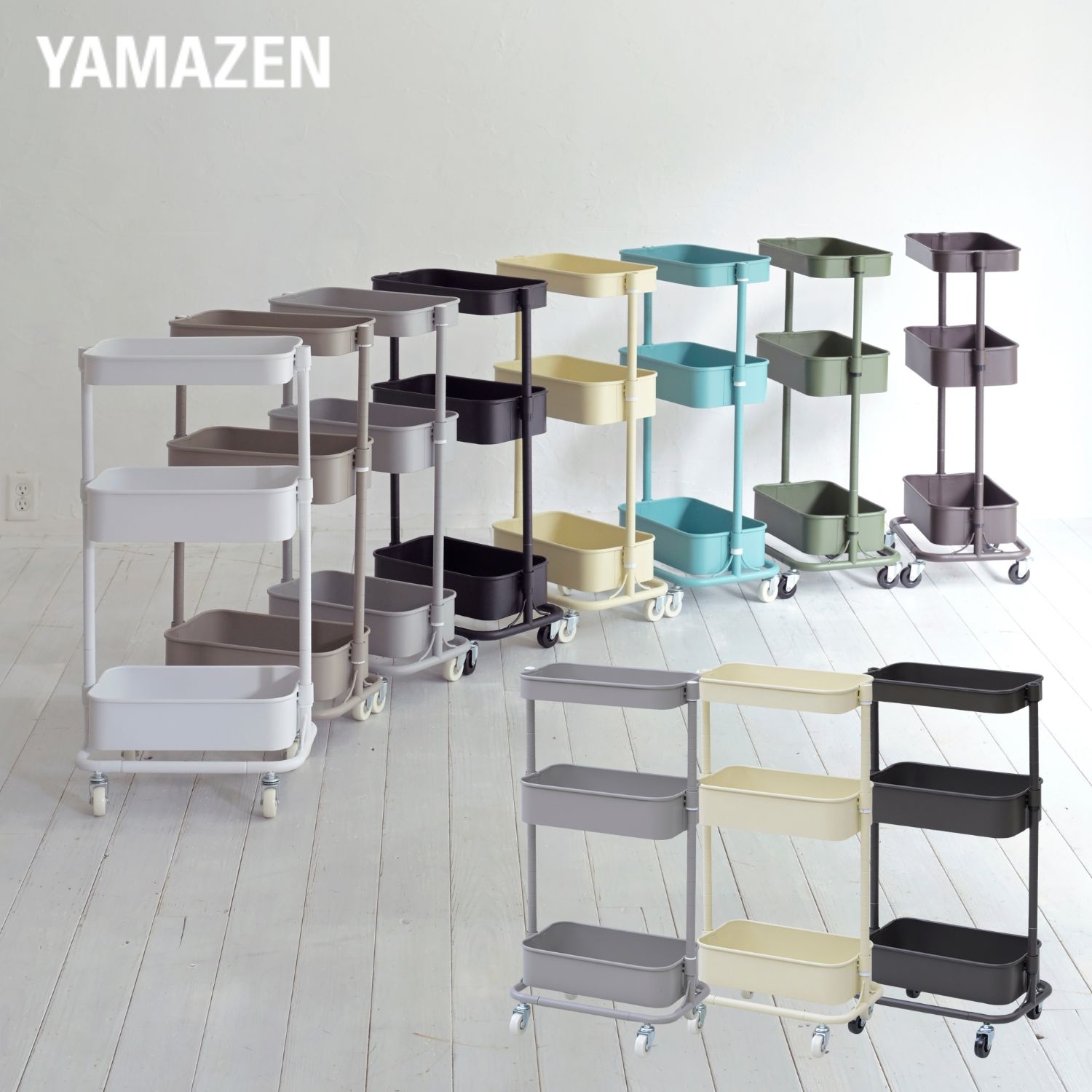 ワゴン スリム キッチンワゴン おしゃれ キャスター付き スリムトローリー 4段 高さが変えられる バスケットトローリー スリムトローリー 山善