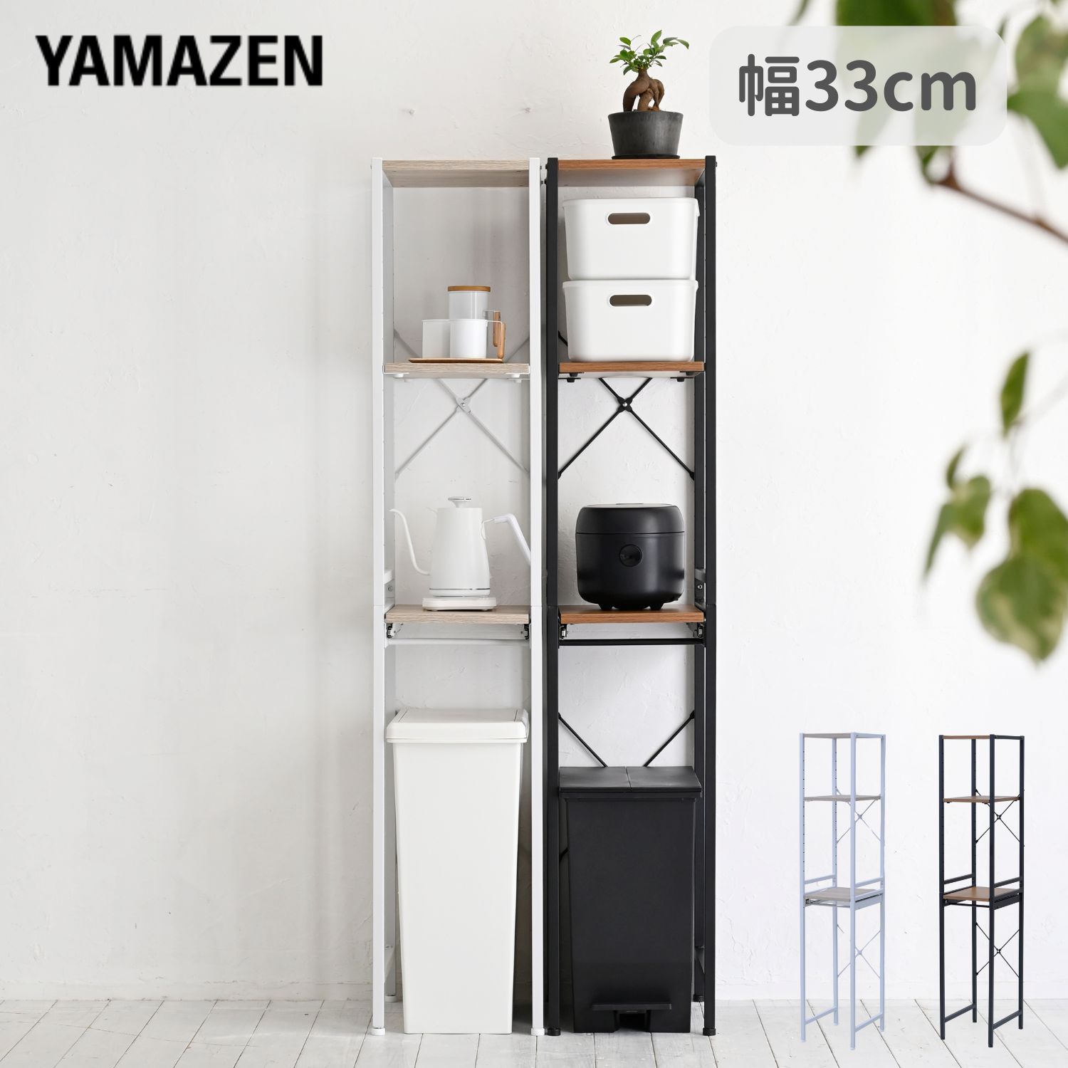 キッチンラック ゴミ箱 ゴミ箱上ラック 幅33 奥行き41 高さ169.5cm レンジラック レンジボード キッチン 収納 収納ラック 食器棚 スライド 山善