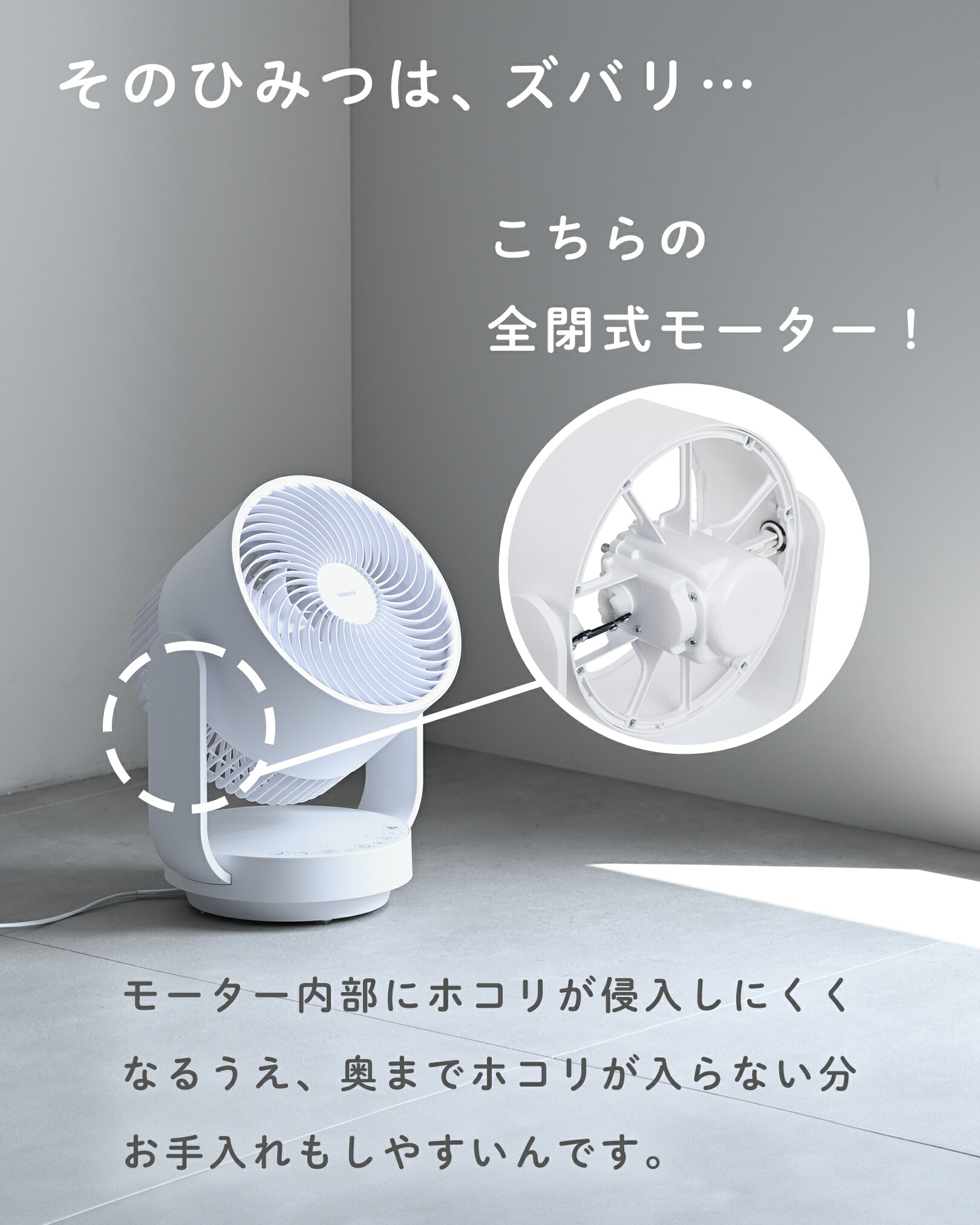 ●ほこりが入りにくい全閉式モーター採用