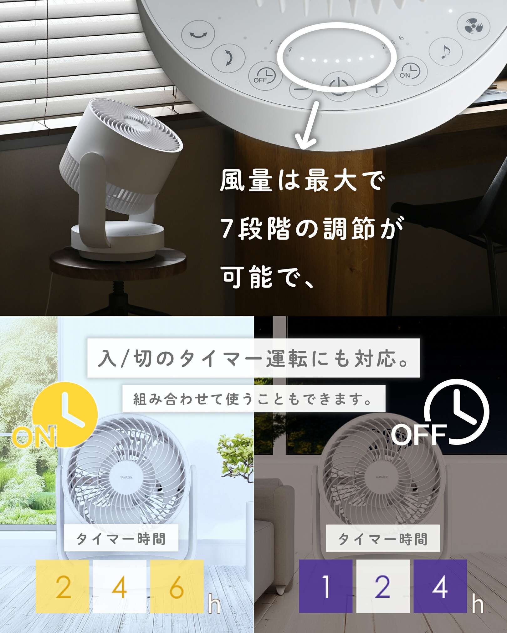 ●タイマー搭載:【切】1/2/4h 【入】2/4/6h