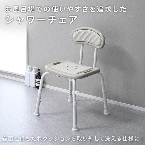シャワーチェア 背付き 風呂イス 介護用品 入浴介助用品 風呂椅子 浴室用椅子 介護 入浴介助 立ち上がり補助 高さ7段階調節 座面丸洗い 山善 YAMAZEN