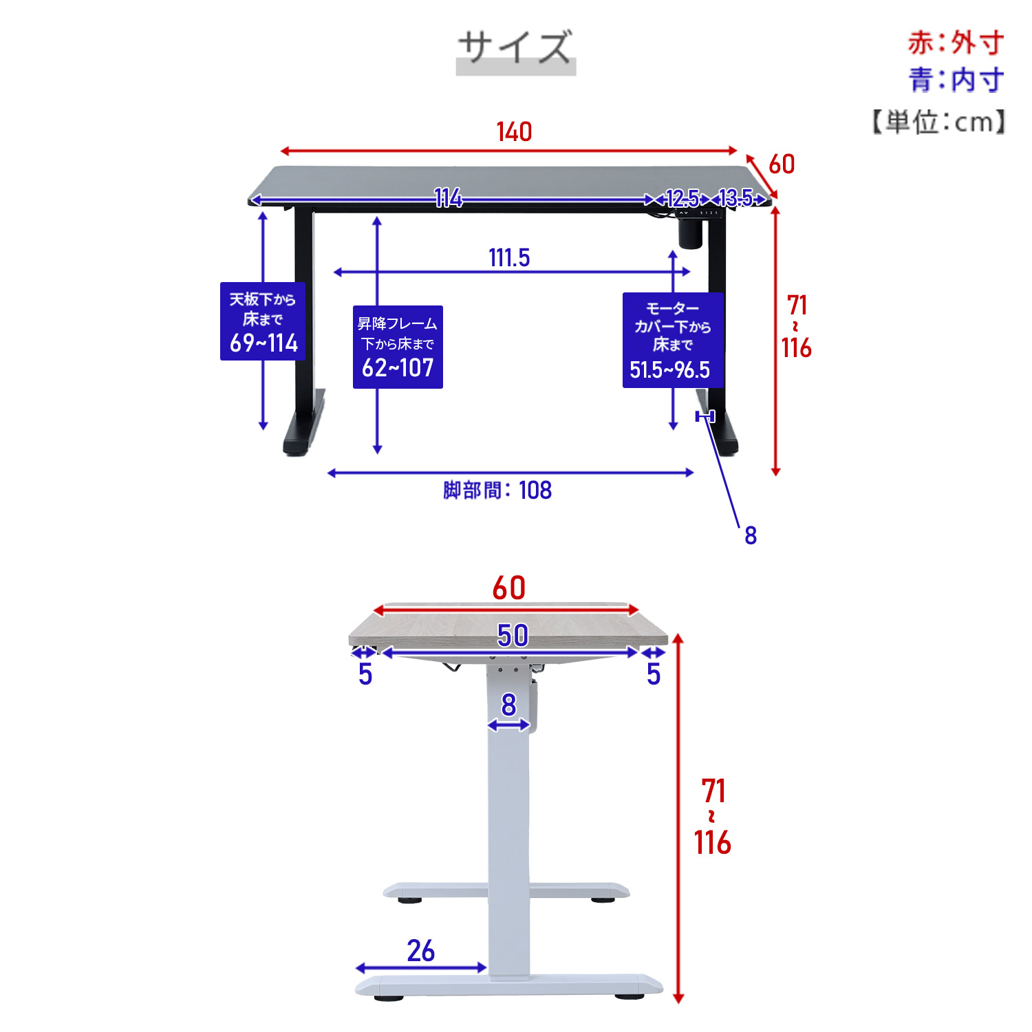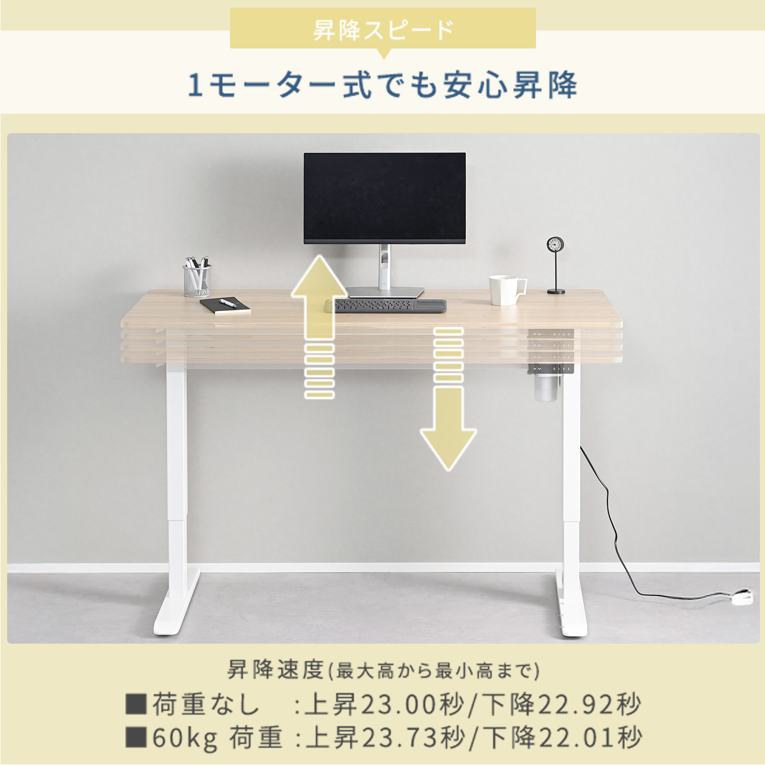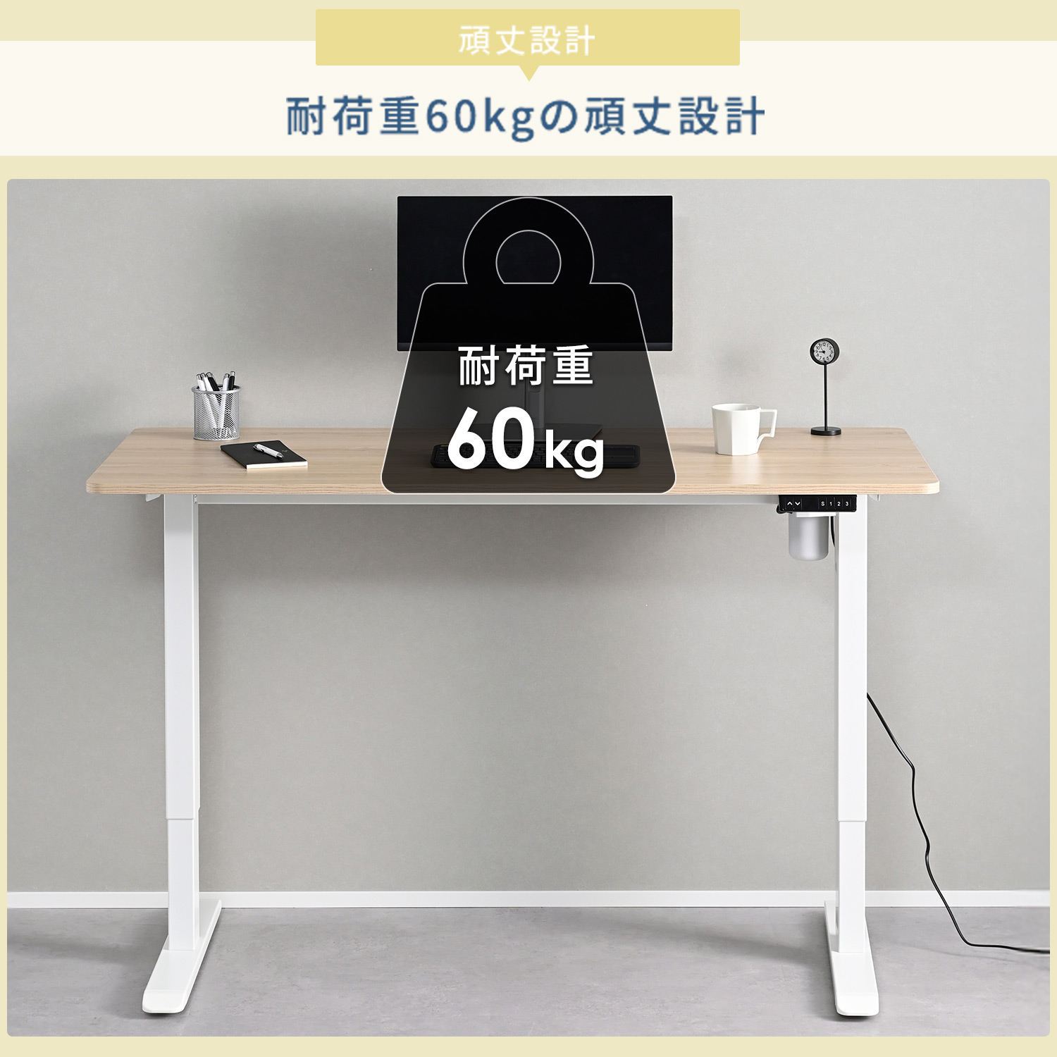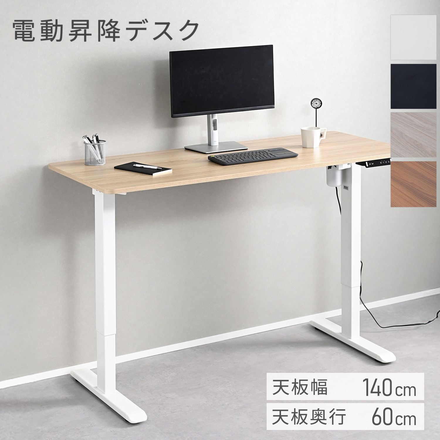 電動 昇降デスク 幅140 奥行60 高さ71-116cm メモリー機能付き
