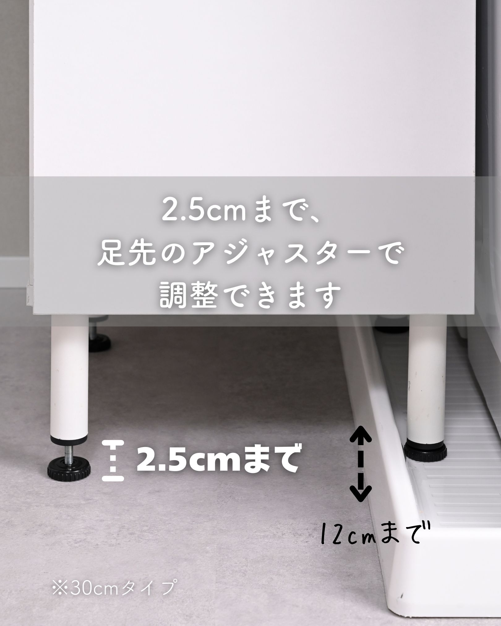●防水パンをまたいで設置できる、アジャスター脚付きタイプ
