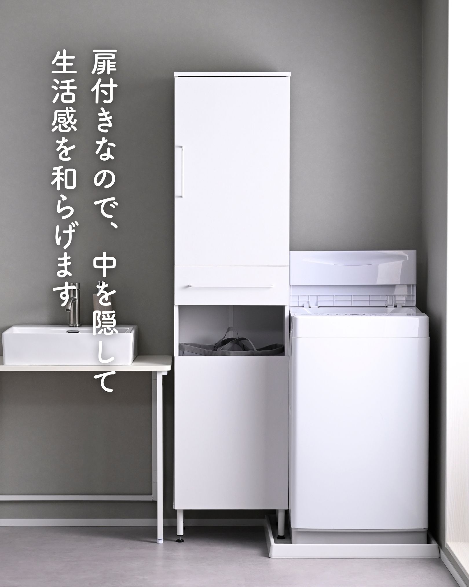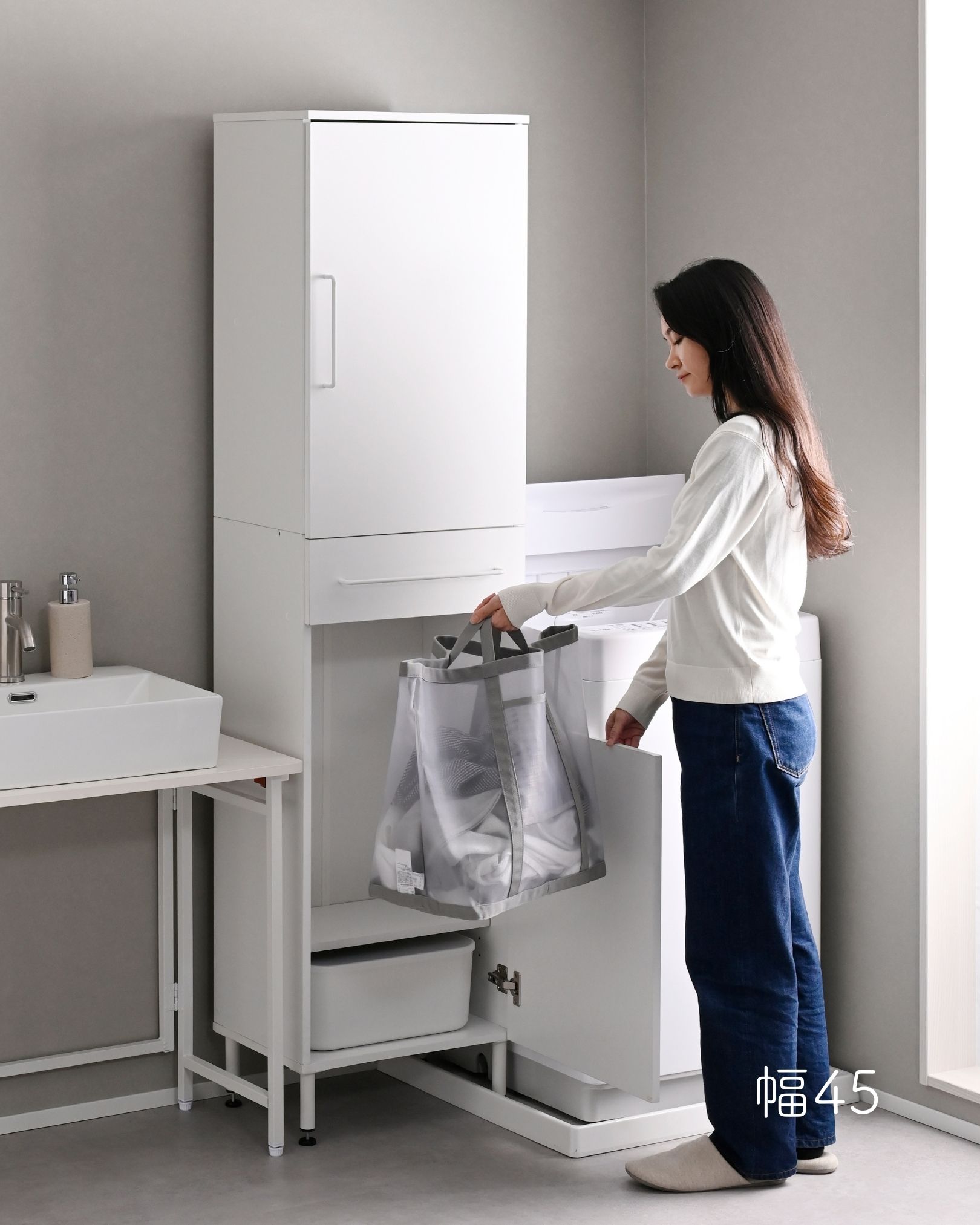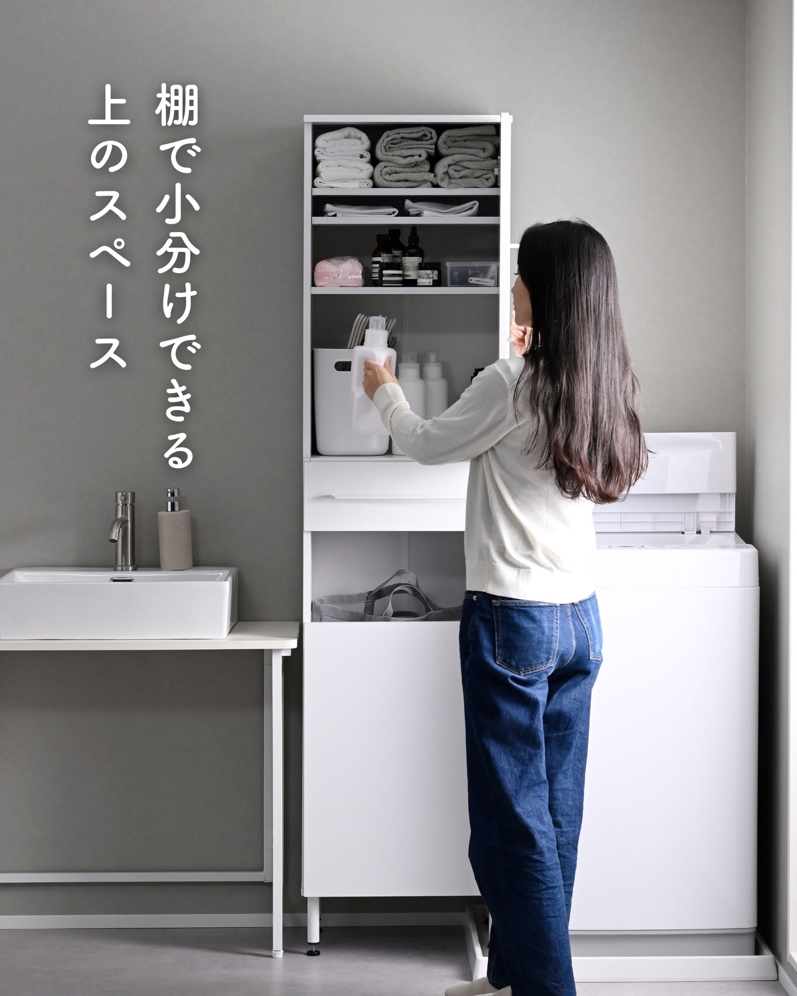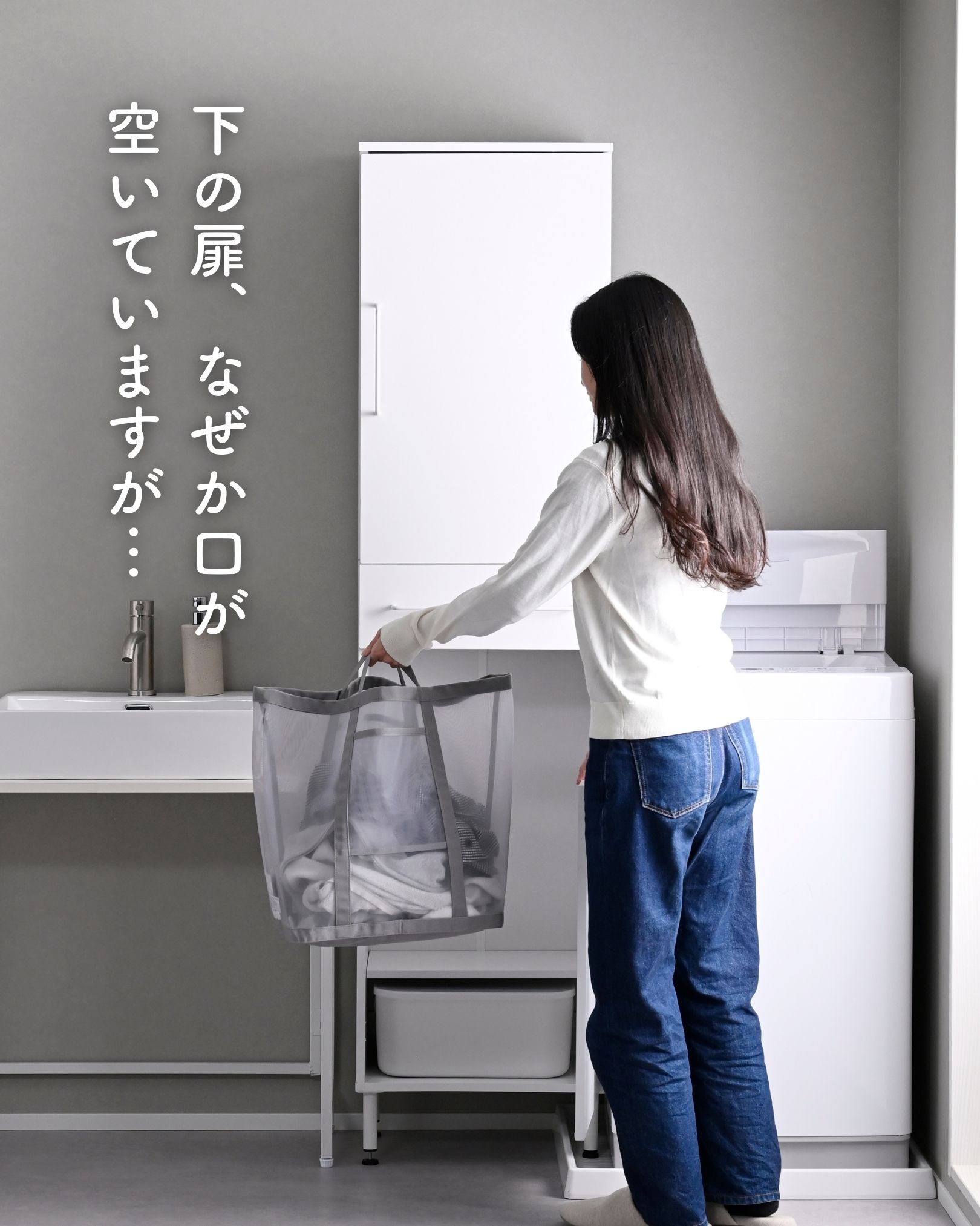 ●下部は洗濯用バッグを隠せるオープンスペース+可動式棚板1枚