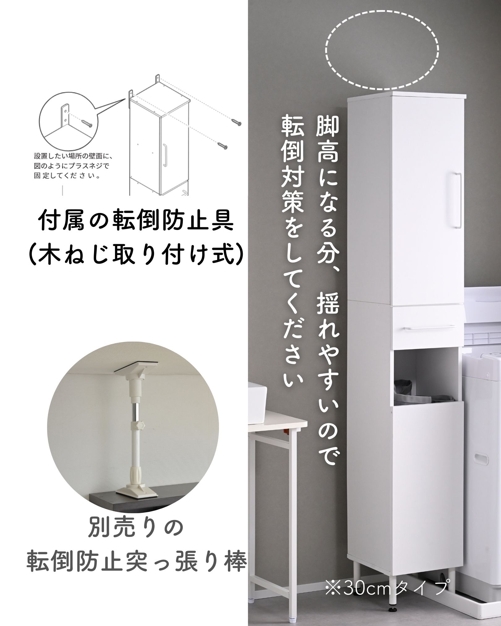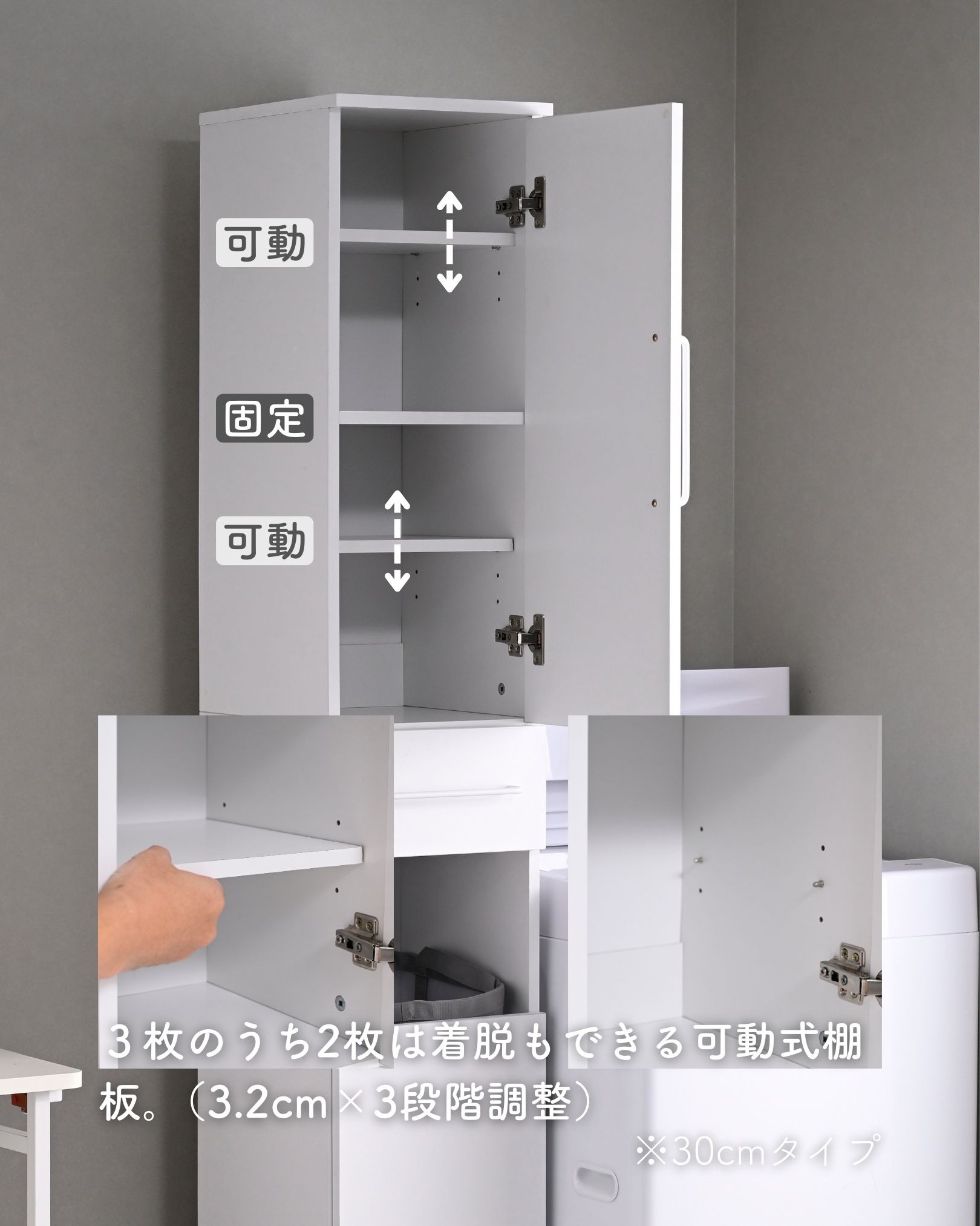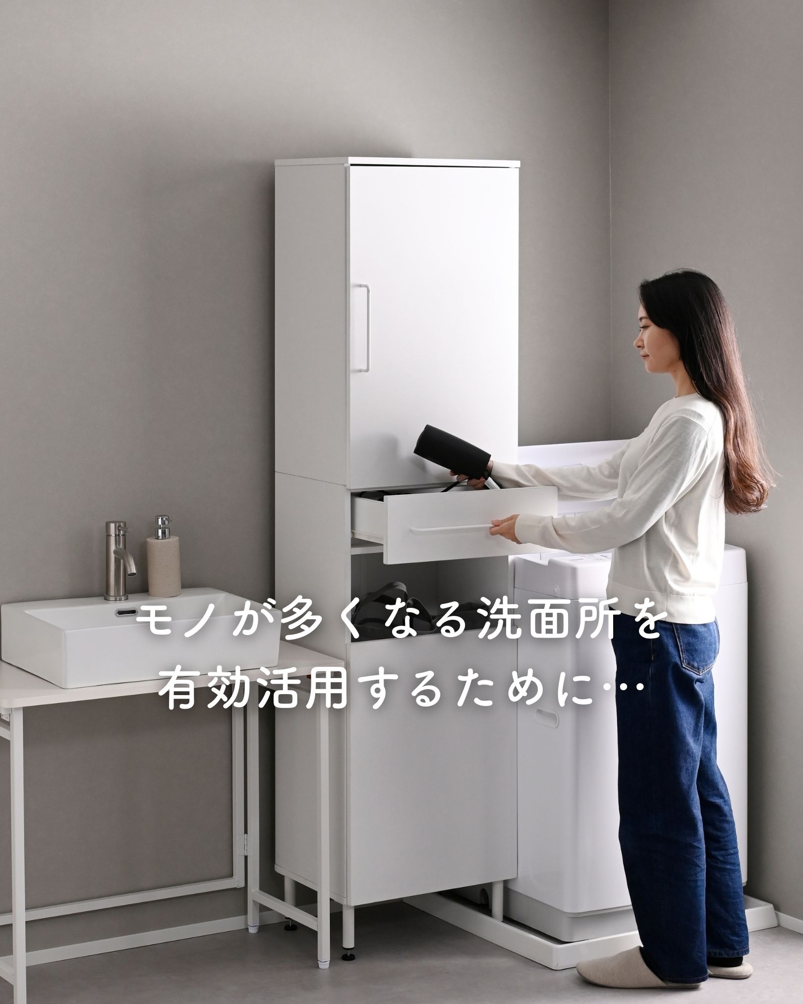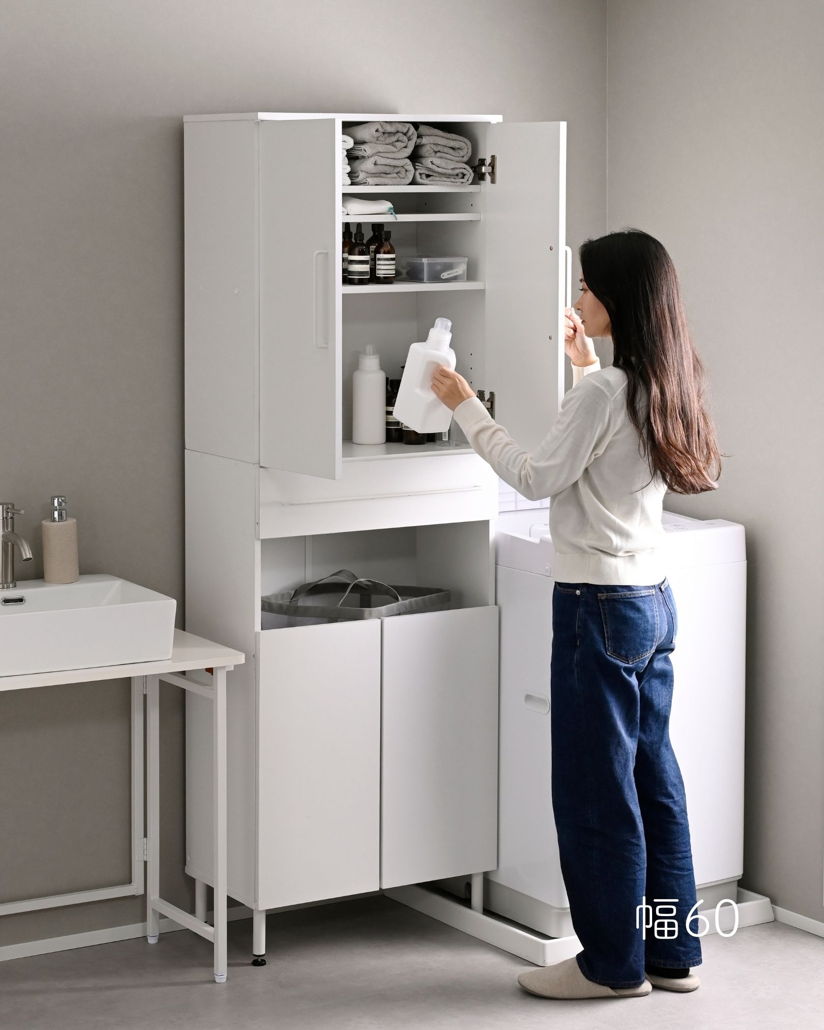●下部は洗濯用バッグを隠せるオープンスペース+可動式棚板1枚