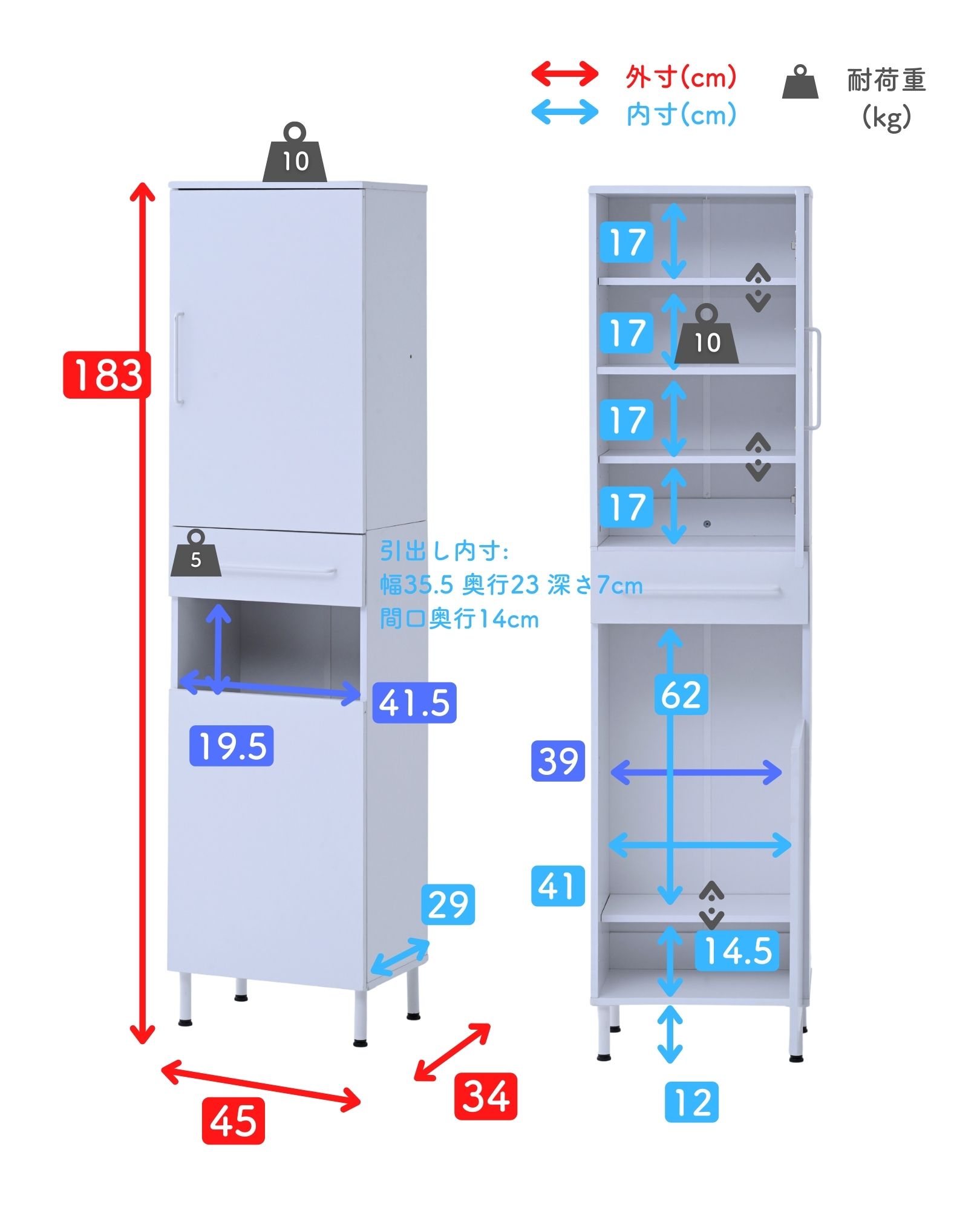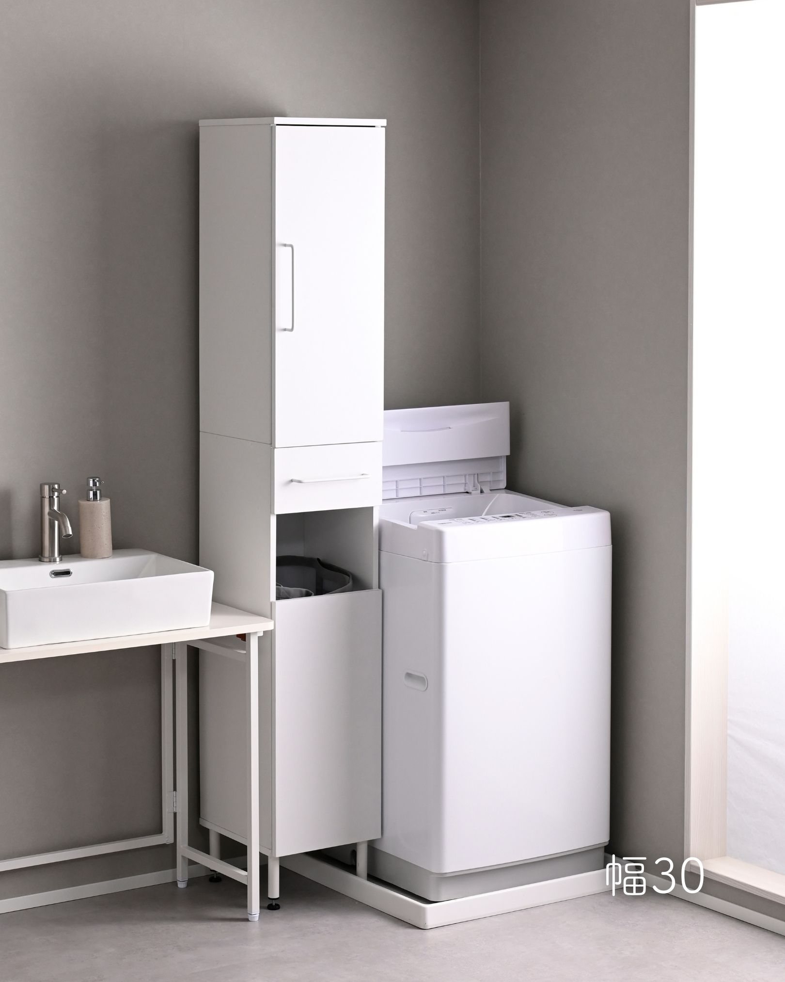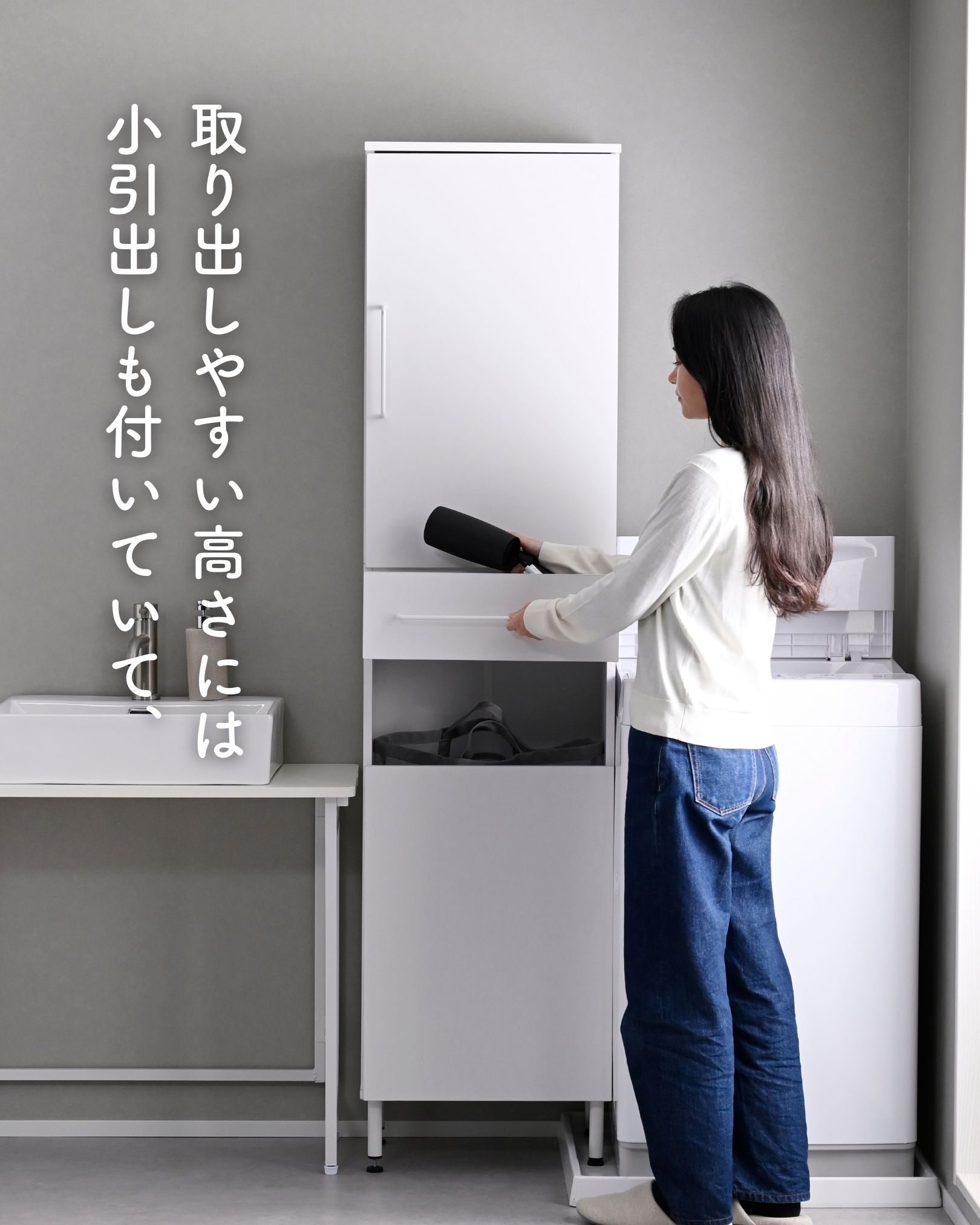 ランドリーラック 防水パンをまたげる 幅45 脚付き 隙間収納 洗濯機横