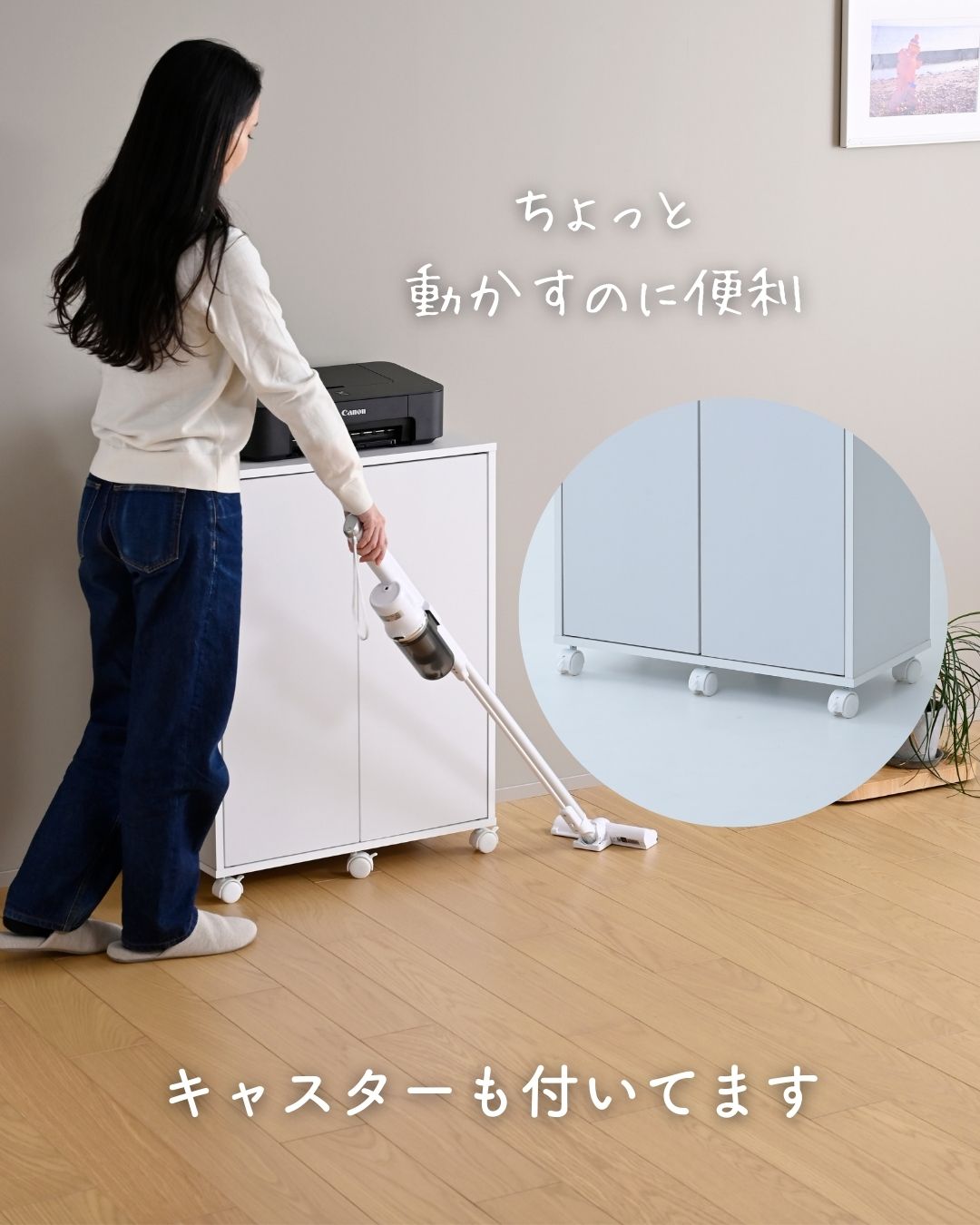 ●キャスター付きで掃除や模様替えをサポート