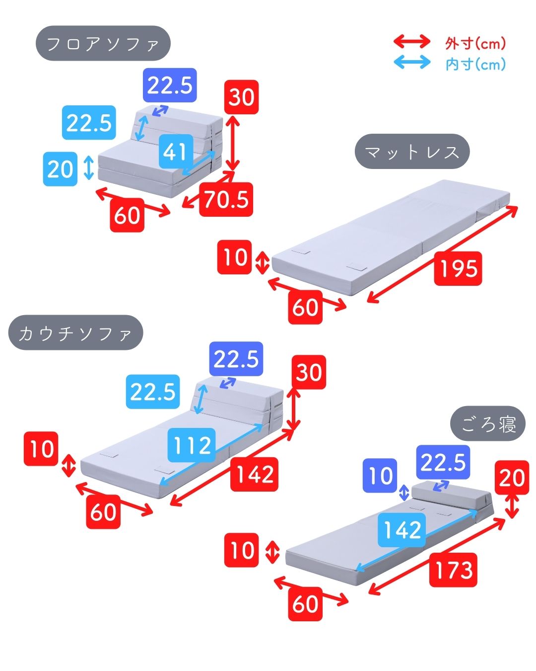 ●マットレス、ローソファ、座椅子、ごろ寝マット、4通りの使い道