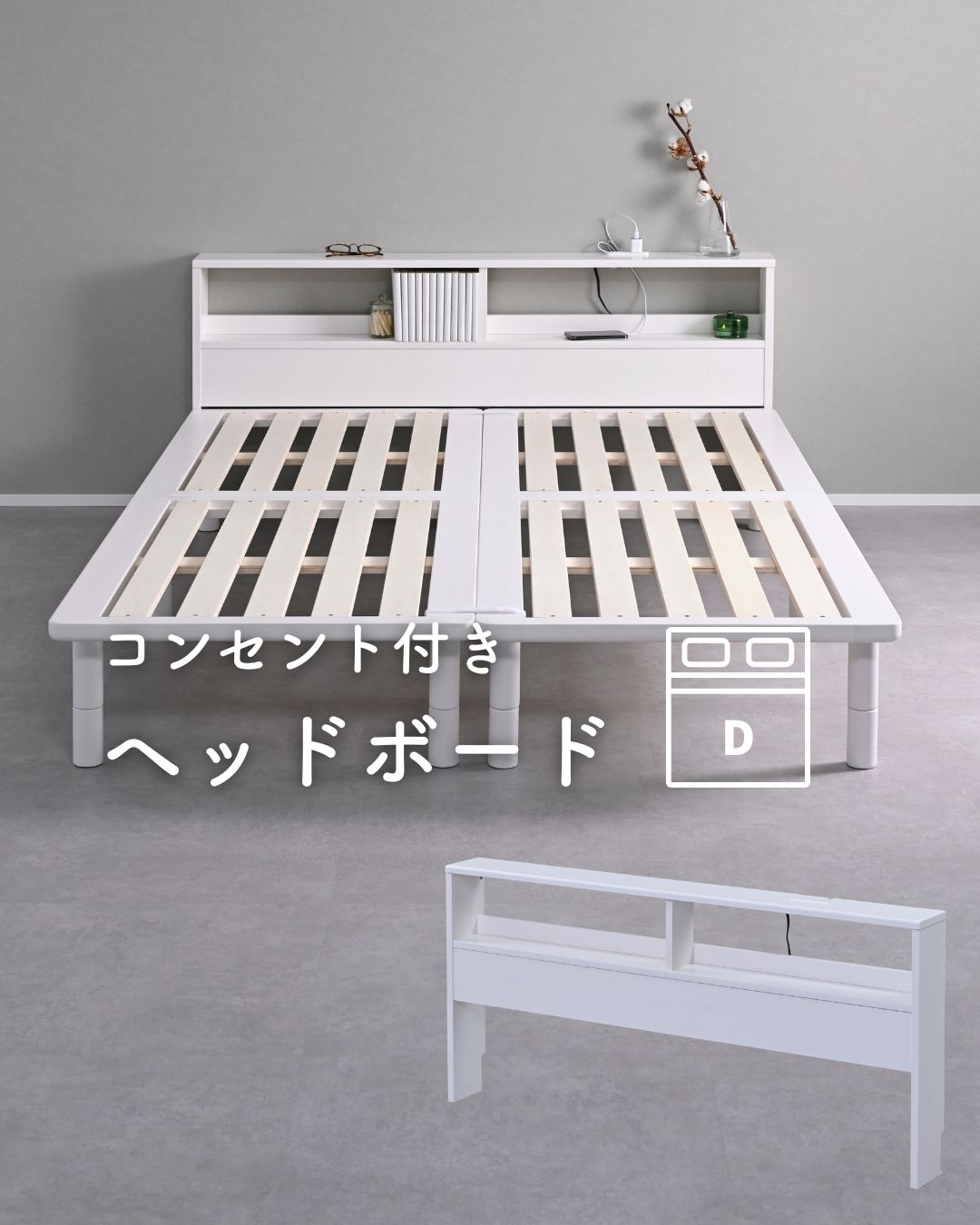 掃除がしやすい ベッド ヘッドボード 後付け コンセント付き