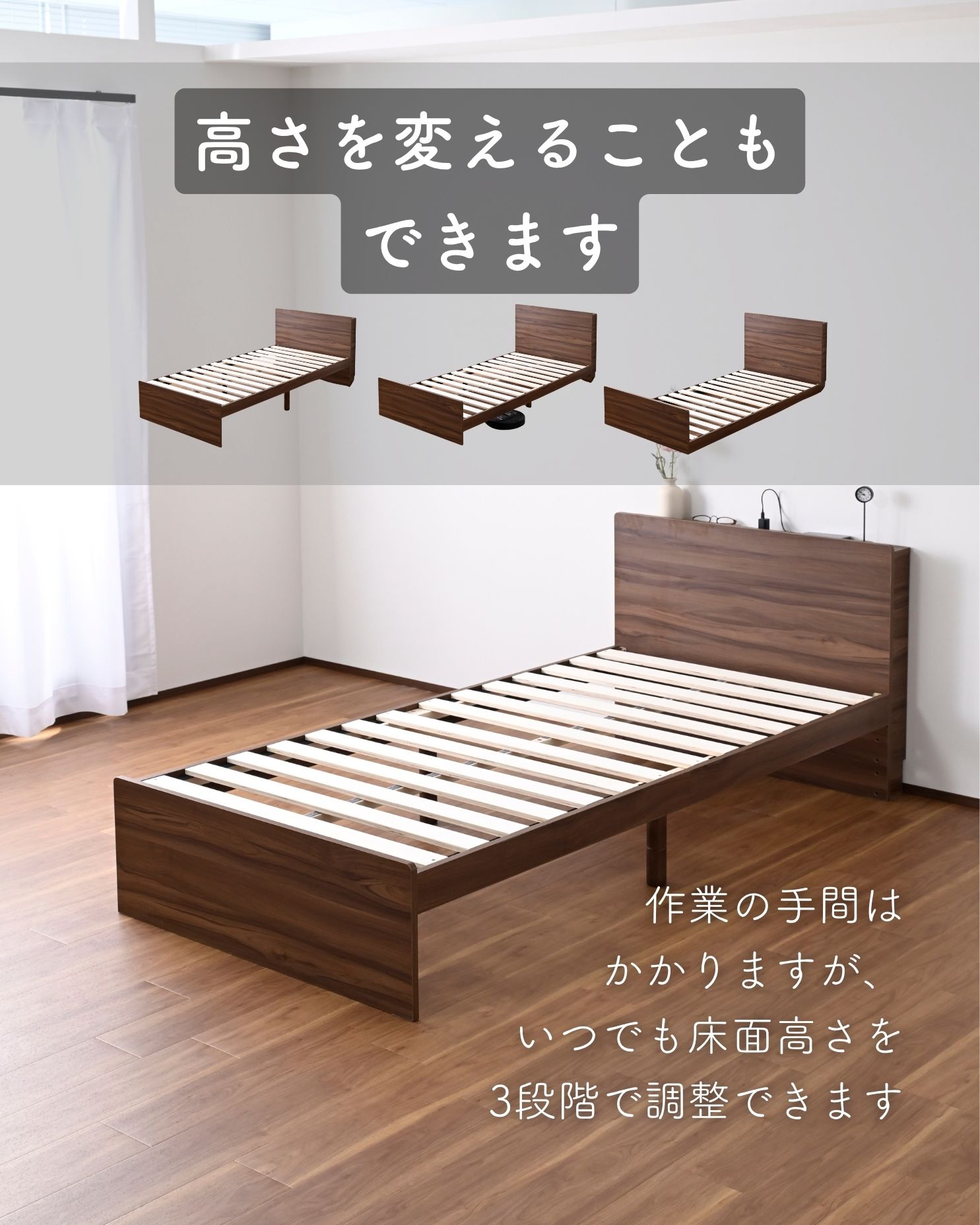 ベッド ベッドフレーム 宮付き コンセント付き 高さ調節可能 シングル