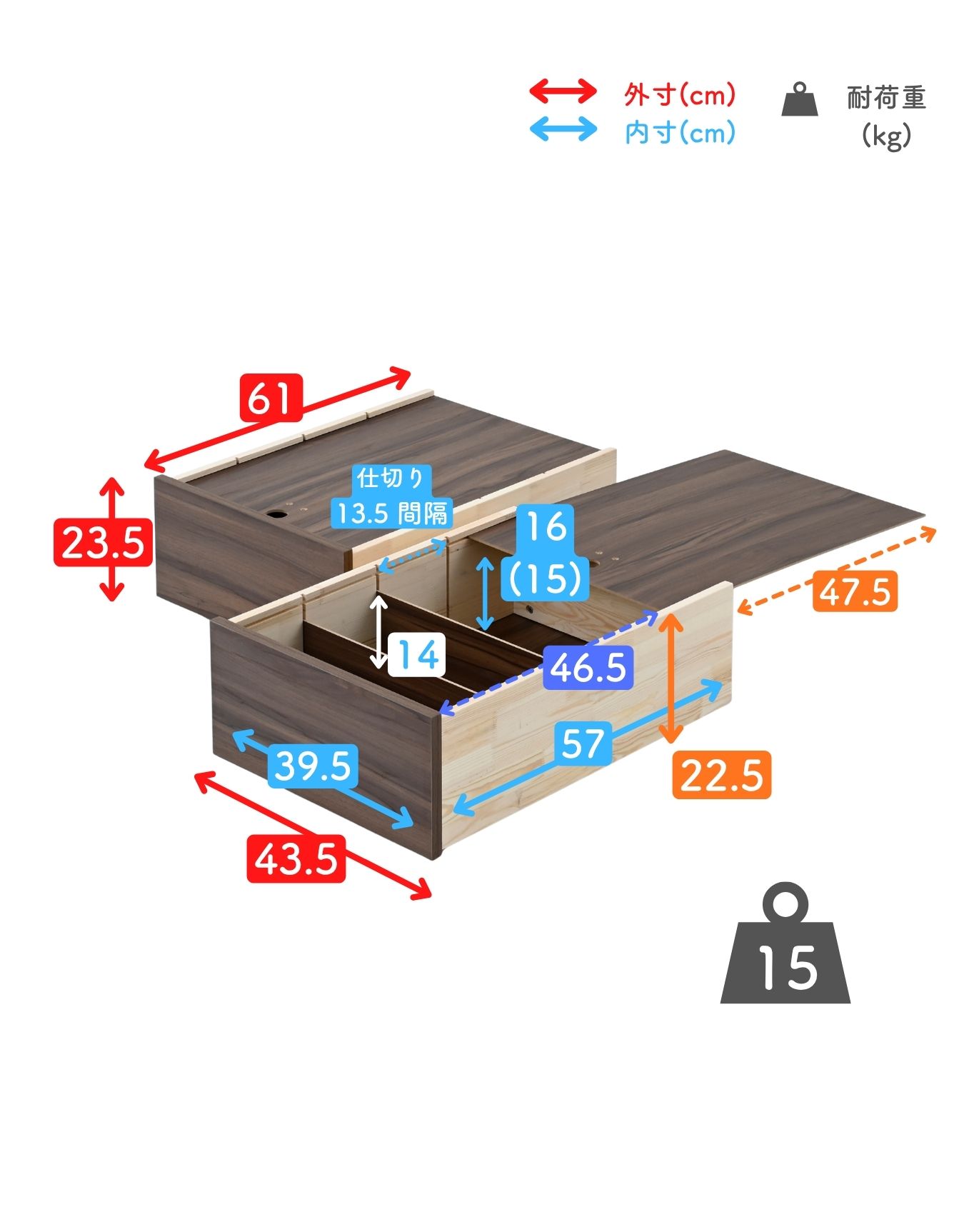 ベッド下 引き出し 深型 フタ付き キャスター付き 仕切り付き 2個組