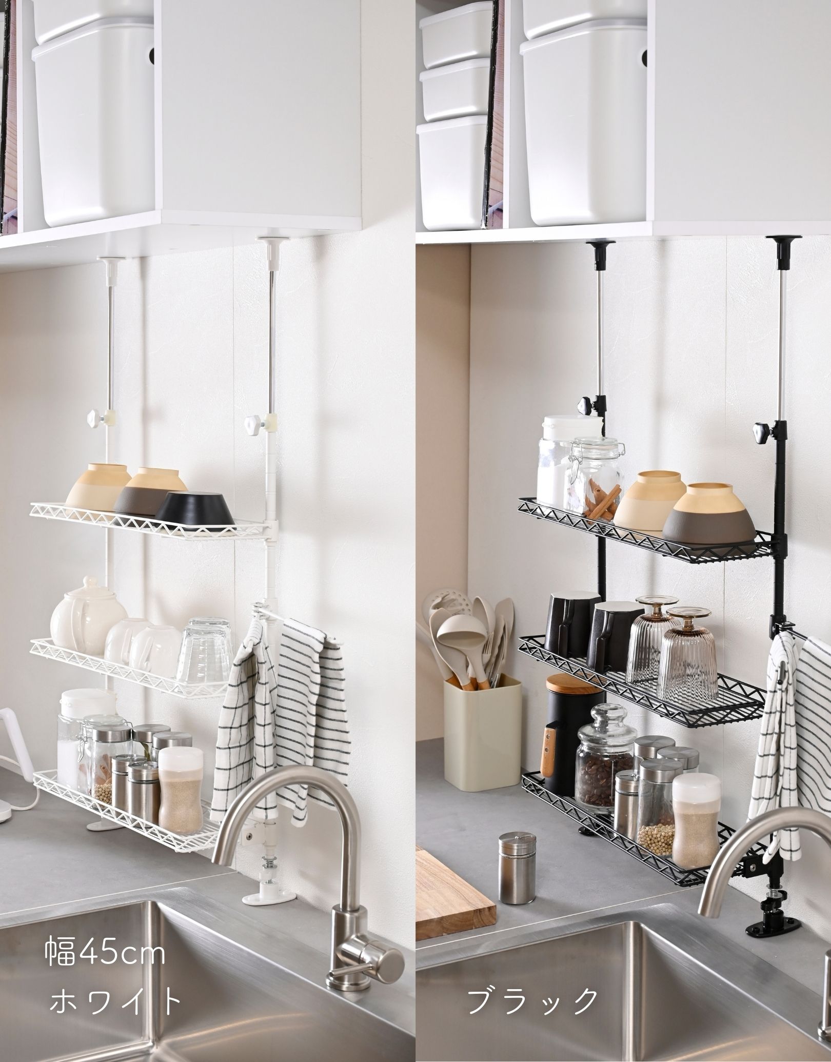 シンク上 キッチン 突っ張りラック 3段 幅45cm