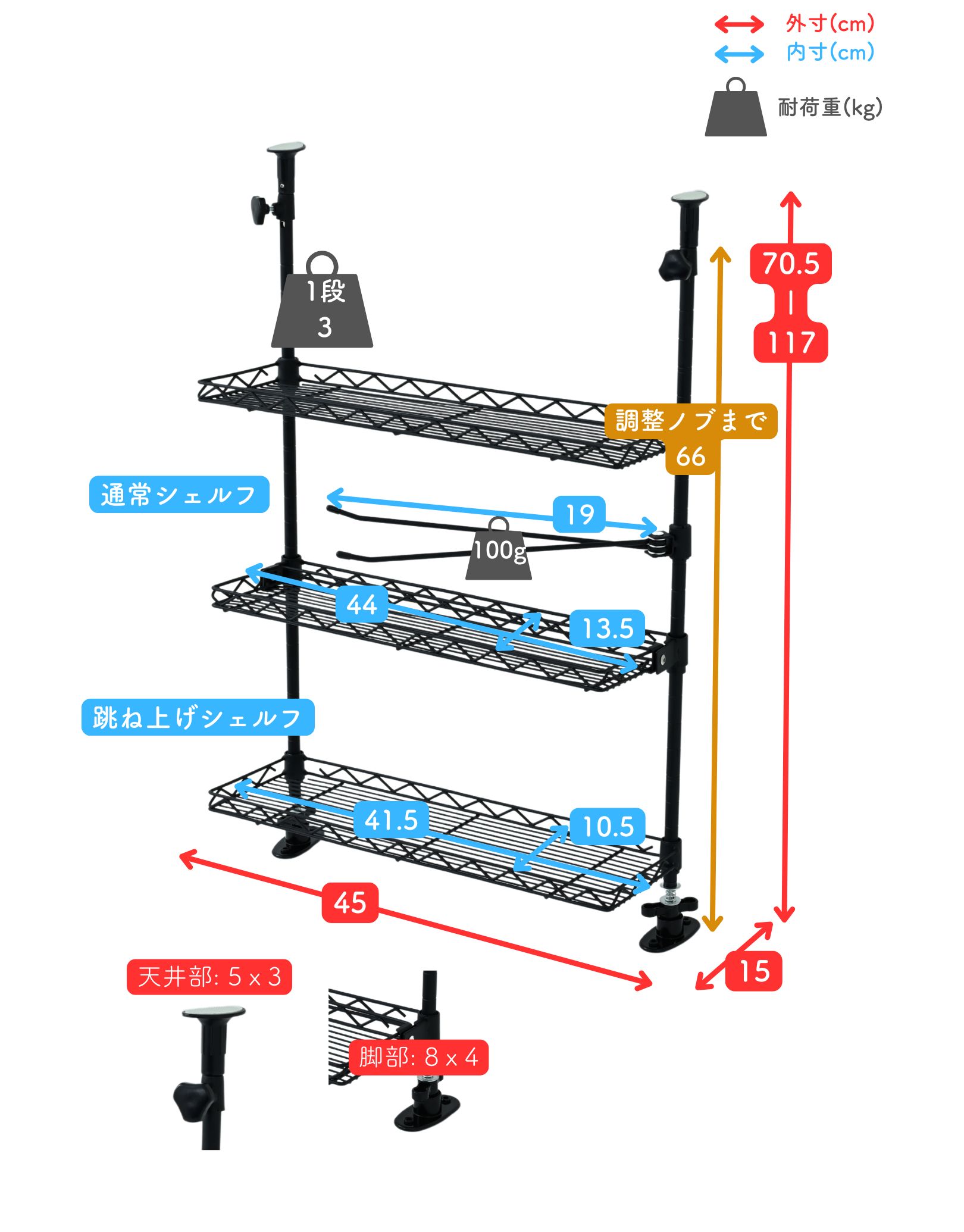 幅45×奥行15×高さ70.5-117cm 重量2.5kg