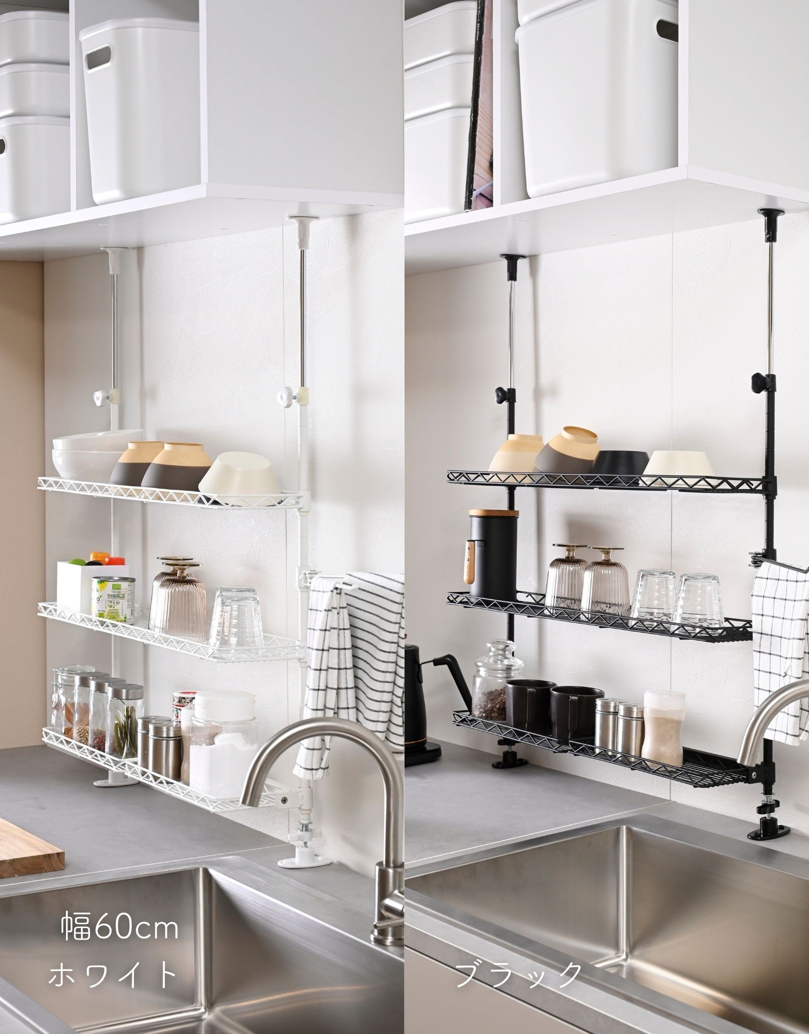 シンク上 キッチン 突っ張りラック 3段 幅60cm