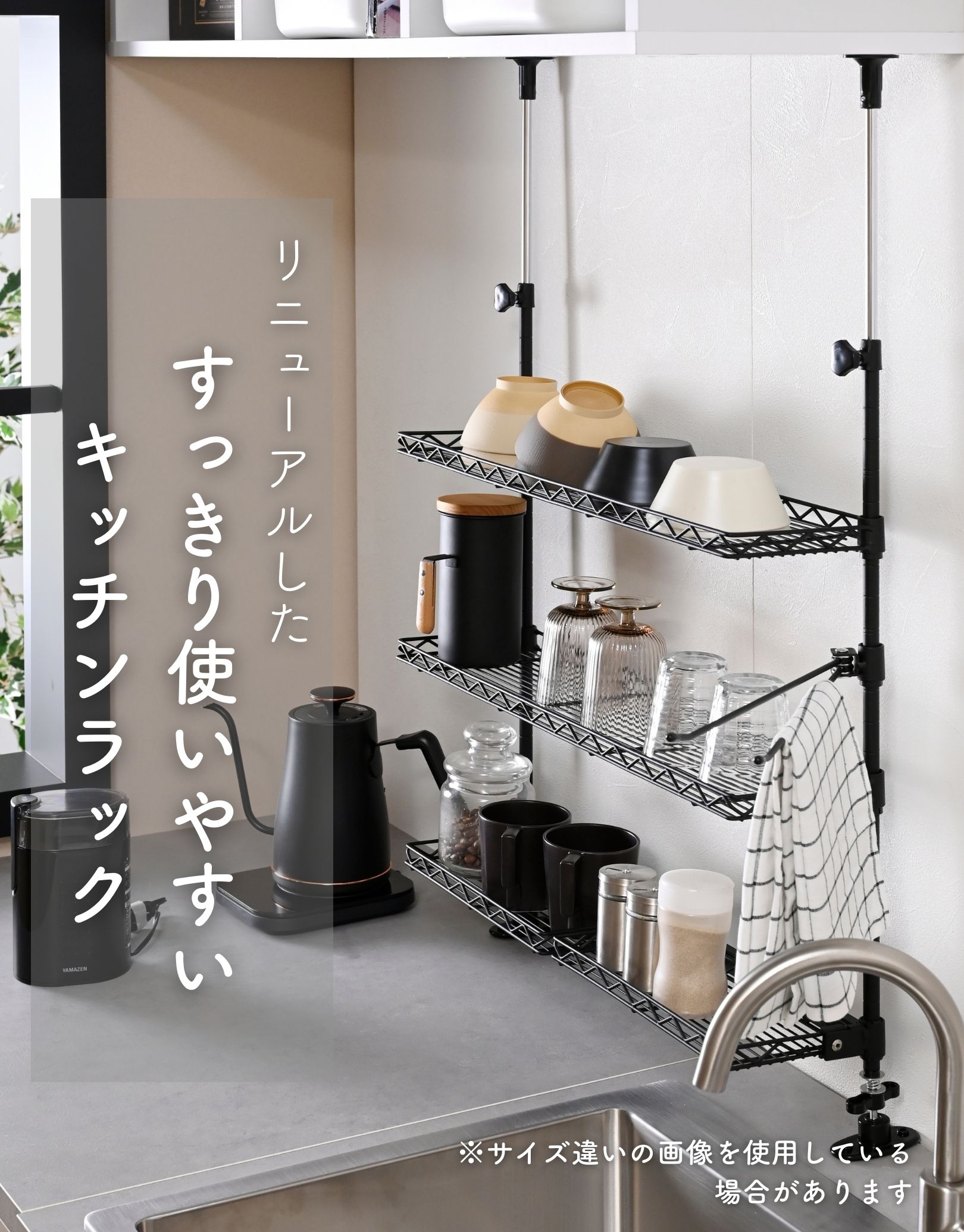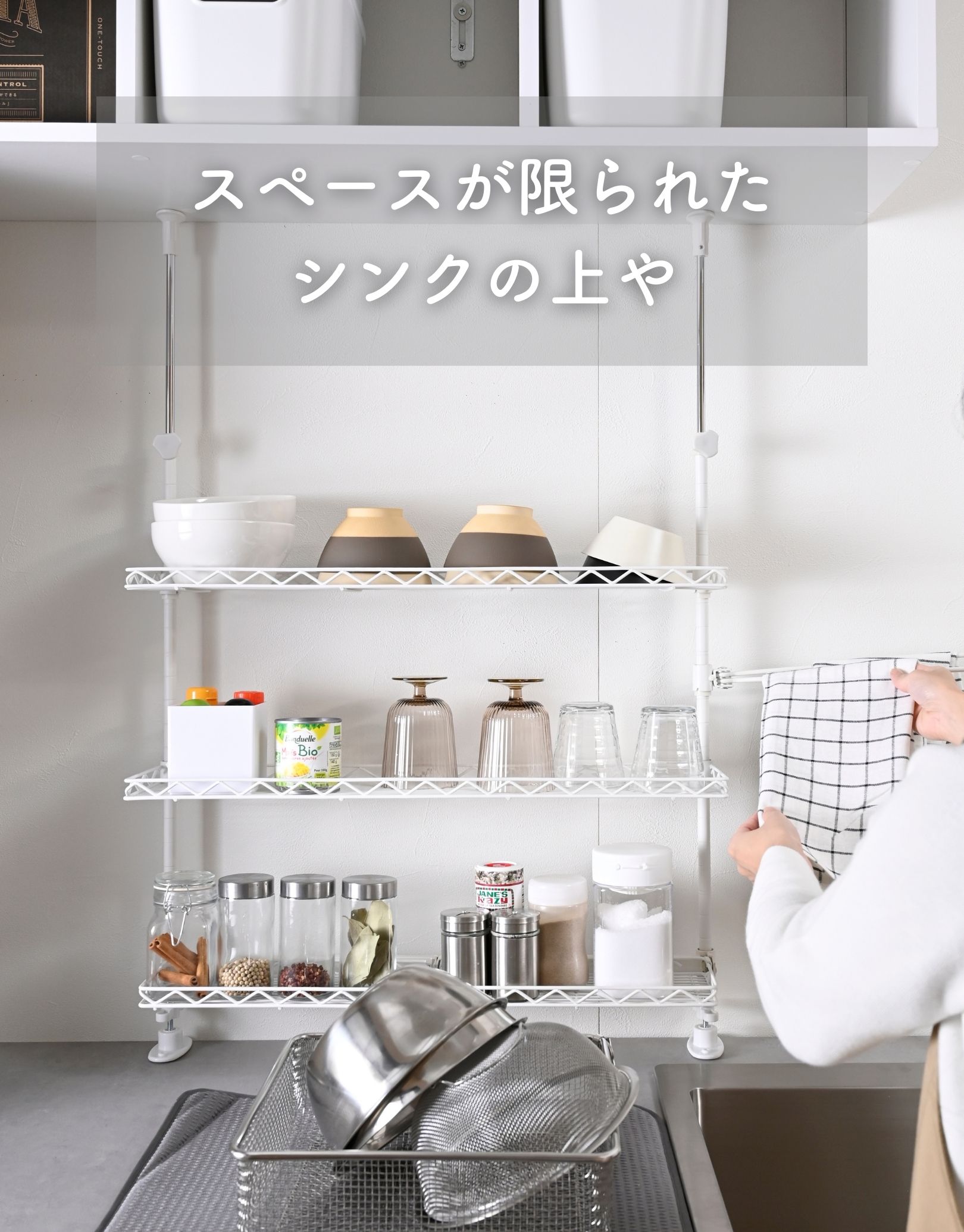 ●設置場所が柔軟な、突っ張り固定式キッチンラック