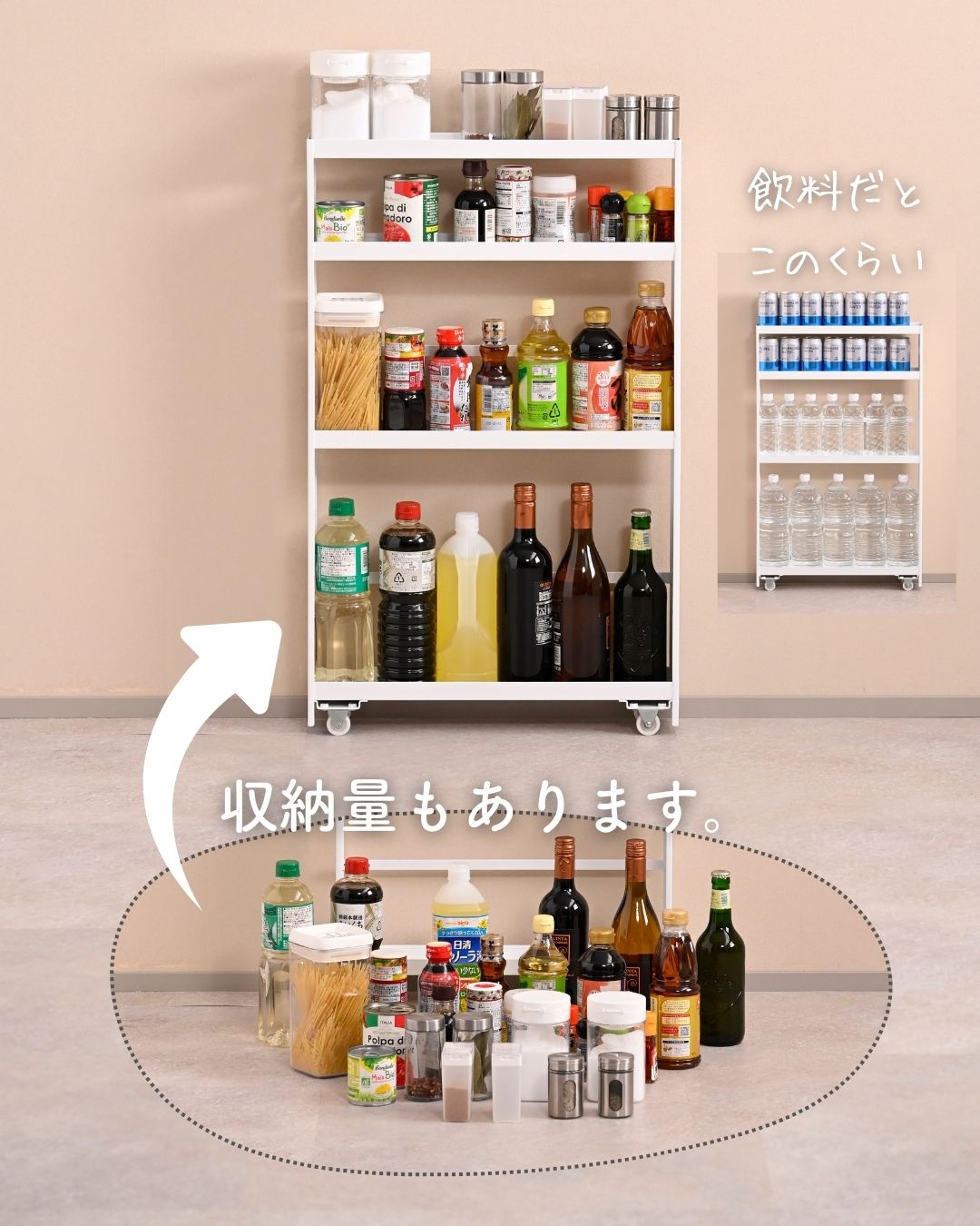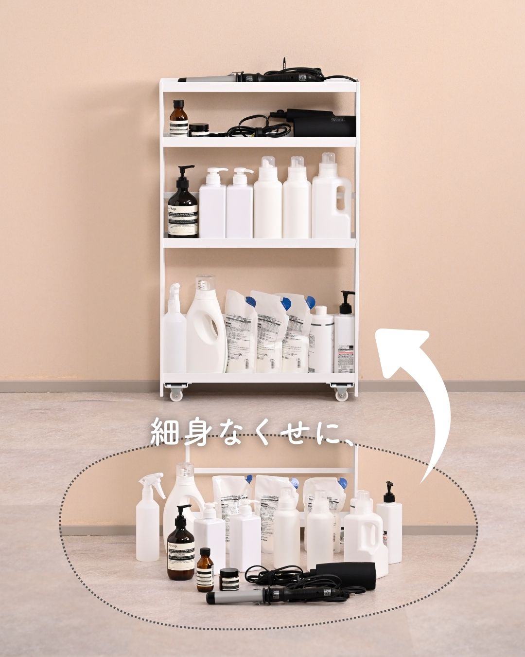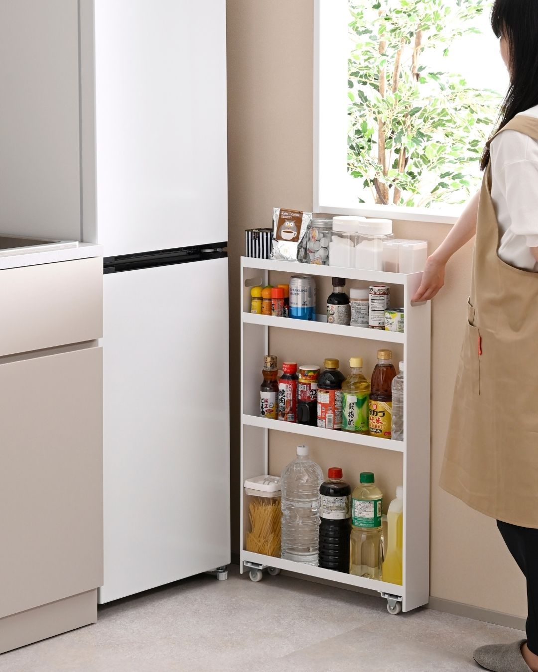 ●家の中の隙間を活用する、幅10cmのスリムなワゴン収納