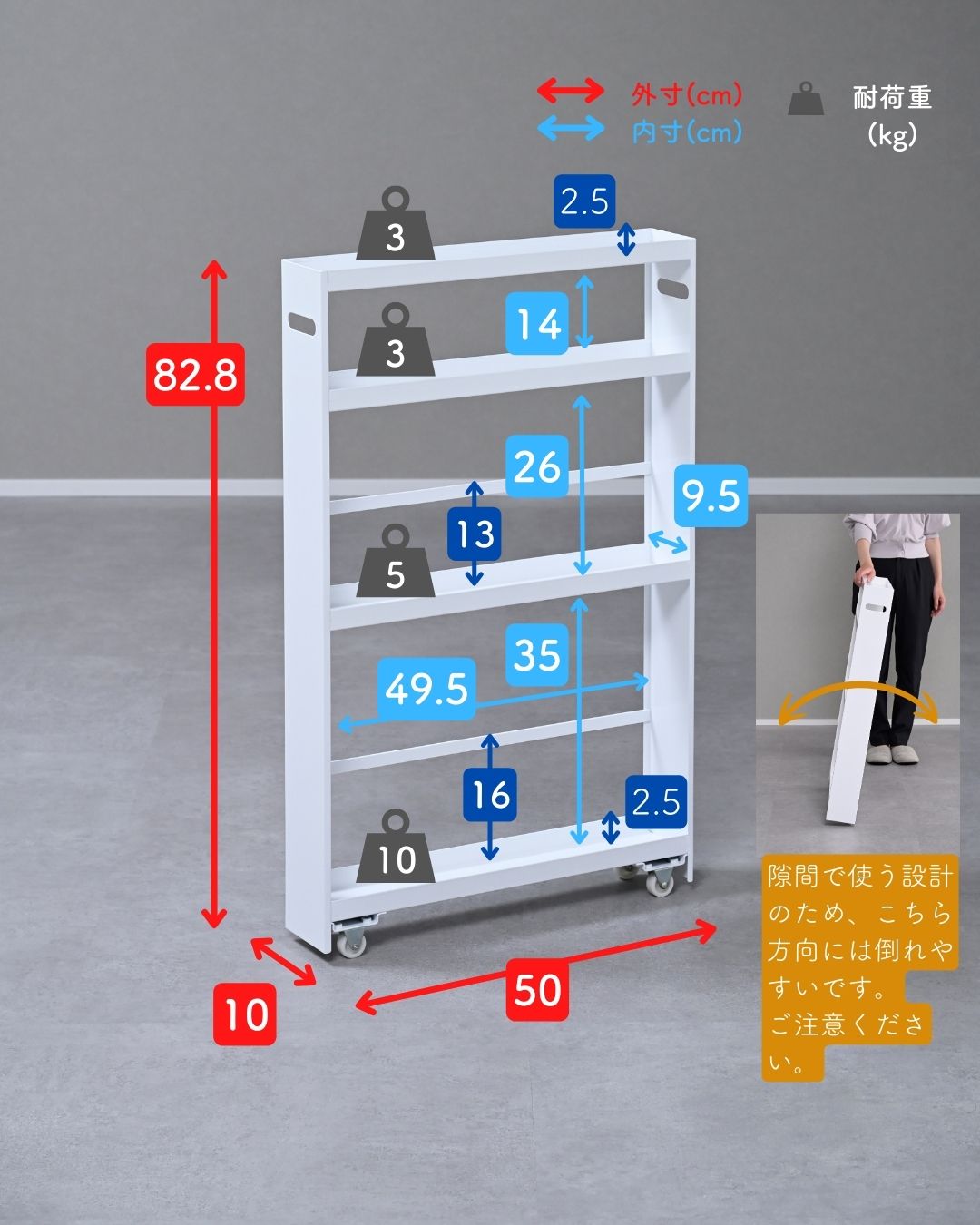 ※本品は隙間に収納して使われる想定です。短辺方向には転倒しやすいので、予めご了承の上ご検討ください。