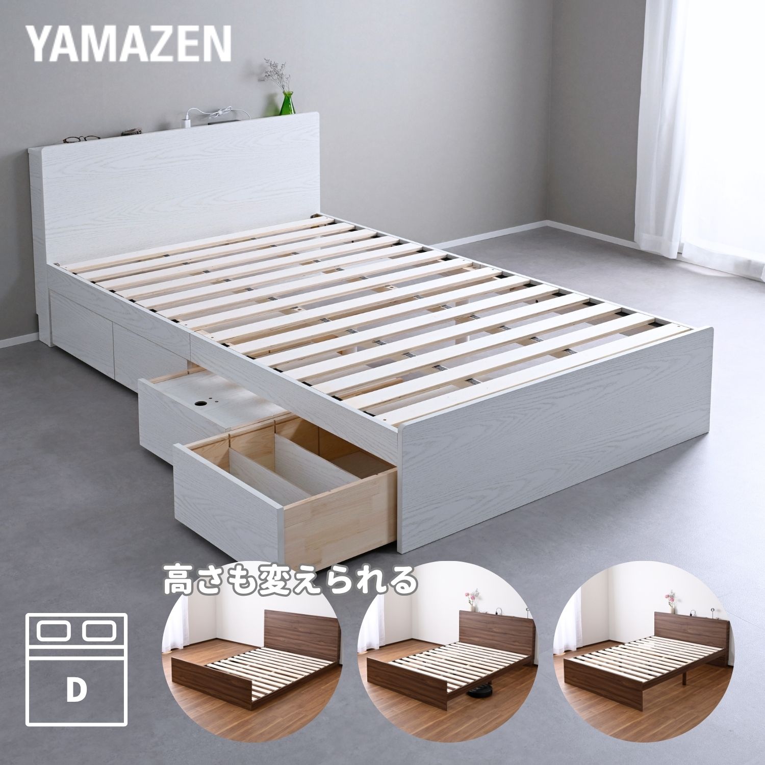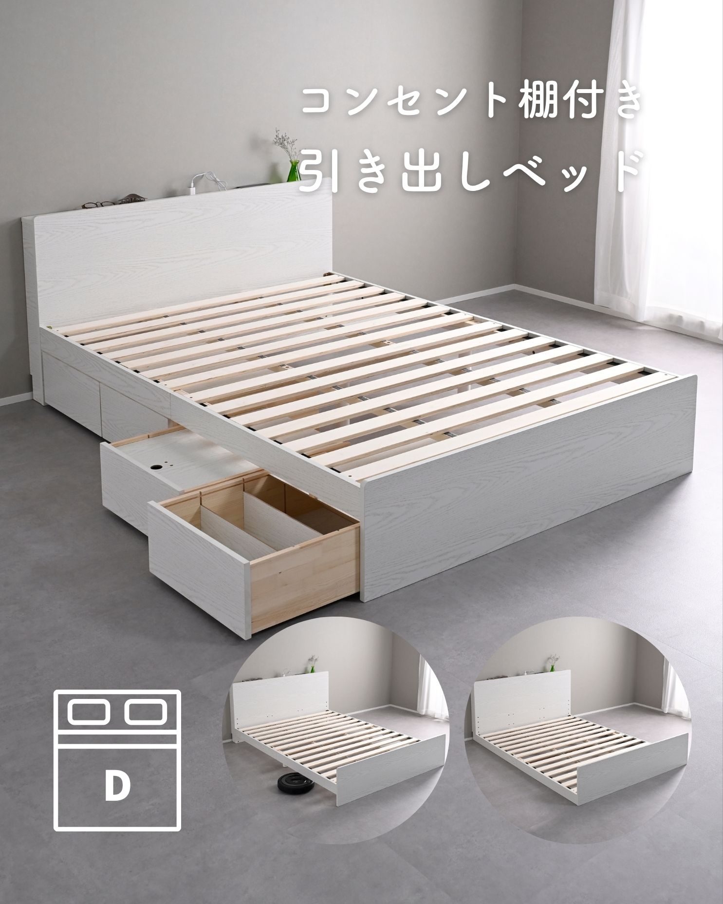 ベッド ベッドフレーム 引き出し付き 宮付き コンセント付き ダブル