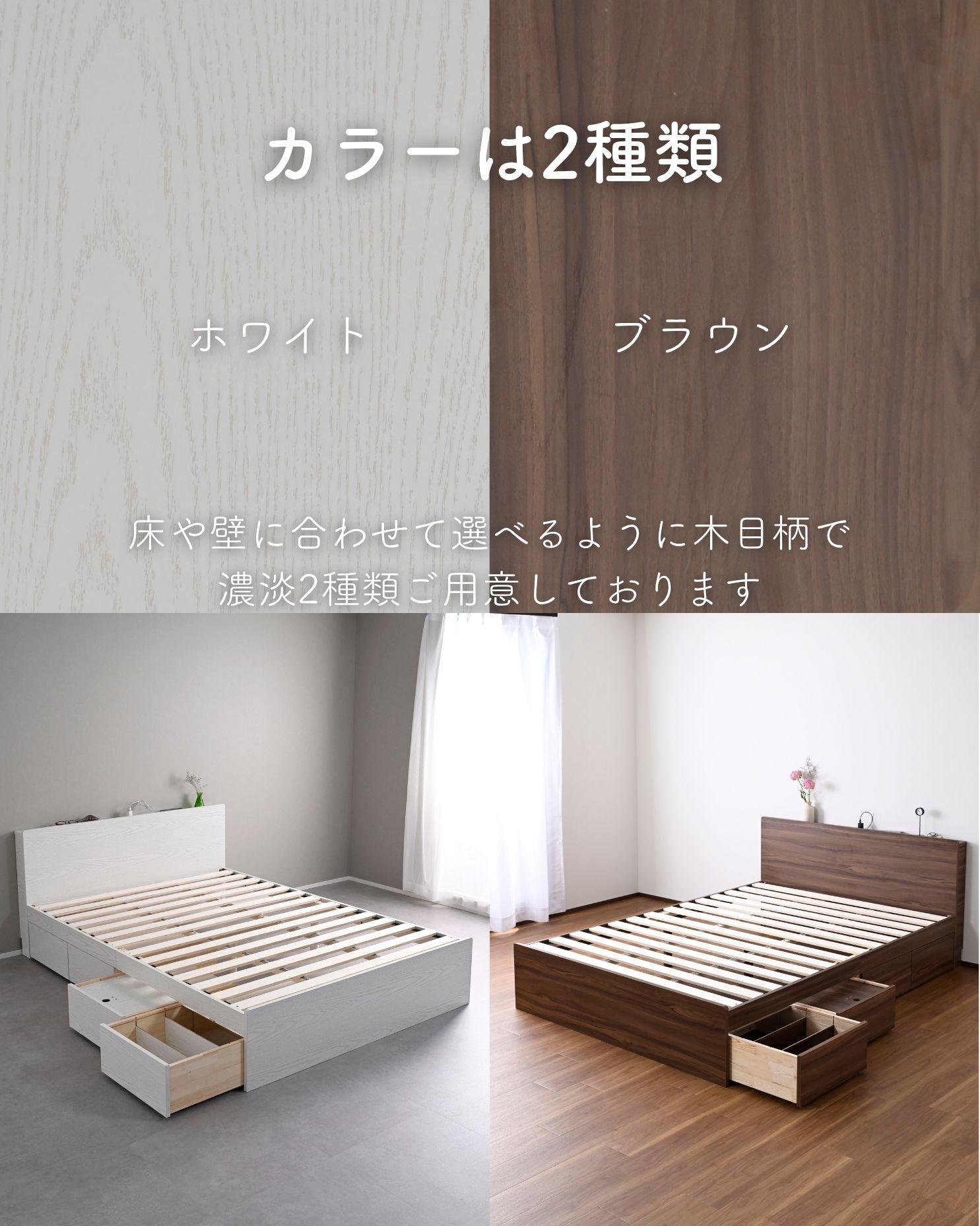 ベッド ベッドフレーム 引き出し付き 宮付き コンセント付き