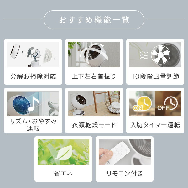 洗える サーキュレーター DCモーター 全分解サーキュレーター 上下左右首振り 28畳まで 風量10段階 DCサーキュレーター 静音 分解できる
