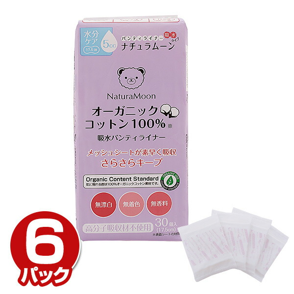 6個セット ナチュラムーン 吸水パンティライナー オーガニックコットン100%5cc 17.5cm 30個入り×6パック(180個) パンティライナー パンティーライナー