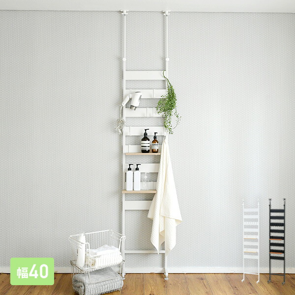 突っ張りラック 棚 壁面ラック 幅40 突っ張り つっぱり ラック ウォールラック 壁面 壁面収納 リビング収納 玄関収納 ラダーラック おしゃれ 山善 YAMAZEN