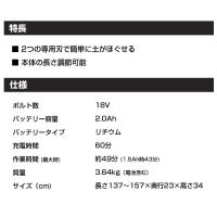 ●ボルト数/バッテリー容量:18V/2.0Ah