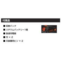 ●付属品:収納バッグ、リチウムバッテリー×1個、急速充電器、刃×2、刃装備用ピン×2