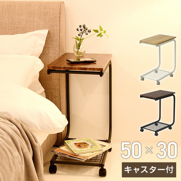 サイドテーブル キャスター付き 幅50×奥行30×高さ60cm BST-5030C ベッドサイドテーブル ベッドテーブル ソファサイドテーブル テーブル ワゴン コの字型 山善