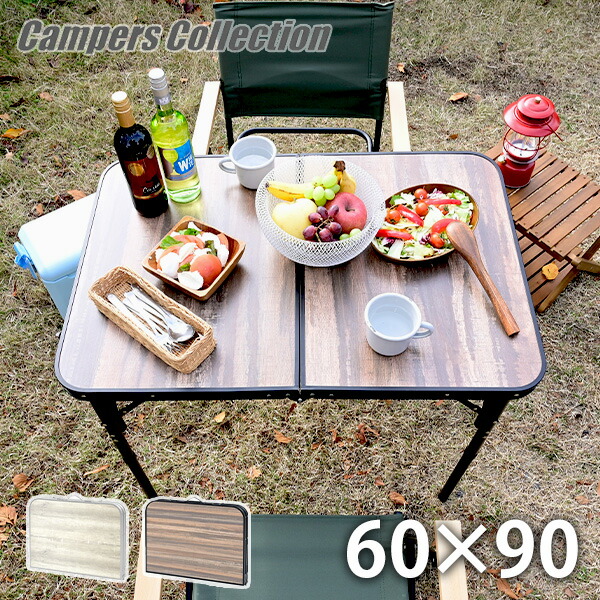 アウトドアテーブル 折りたたみ アルミ 軽量 木目 ブラウン ホワイト 60cm 90cm BAT-6090/YAT-6090 山善 キャンパーズコレクション