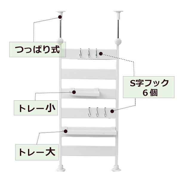 ●耐荷重:フック1個あたり1kg、トレー(小)2kg、(大)3kg