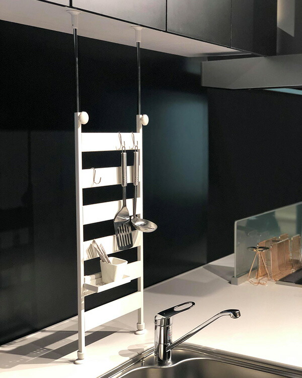 YAMAZEN ヤマゼン 山善 通販 突っ張りラック スパイスラック 調味料ラック 調味料入れ 調味料棚 調味料収納 スパイス棚 スパイス収納 キッチンラック シンク上ラック シンクサイド キッチンツールスタンド キッチンツールハンガー 突っ張り つっぱり 収納ラック