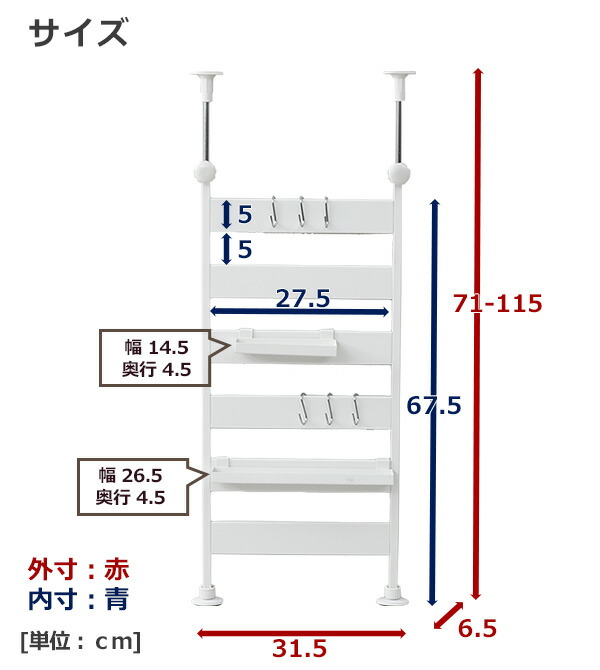 幅31.5×奥行6.5×高さ71-115cm 重量2kg