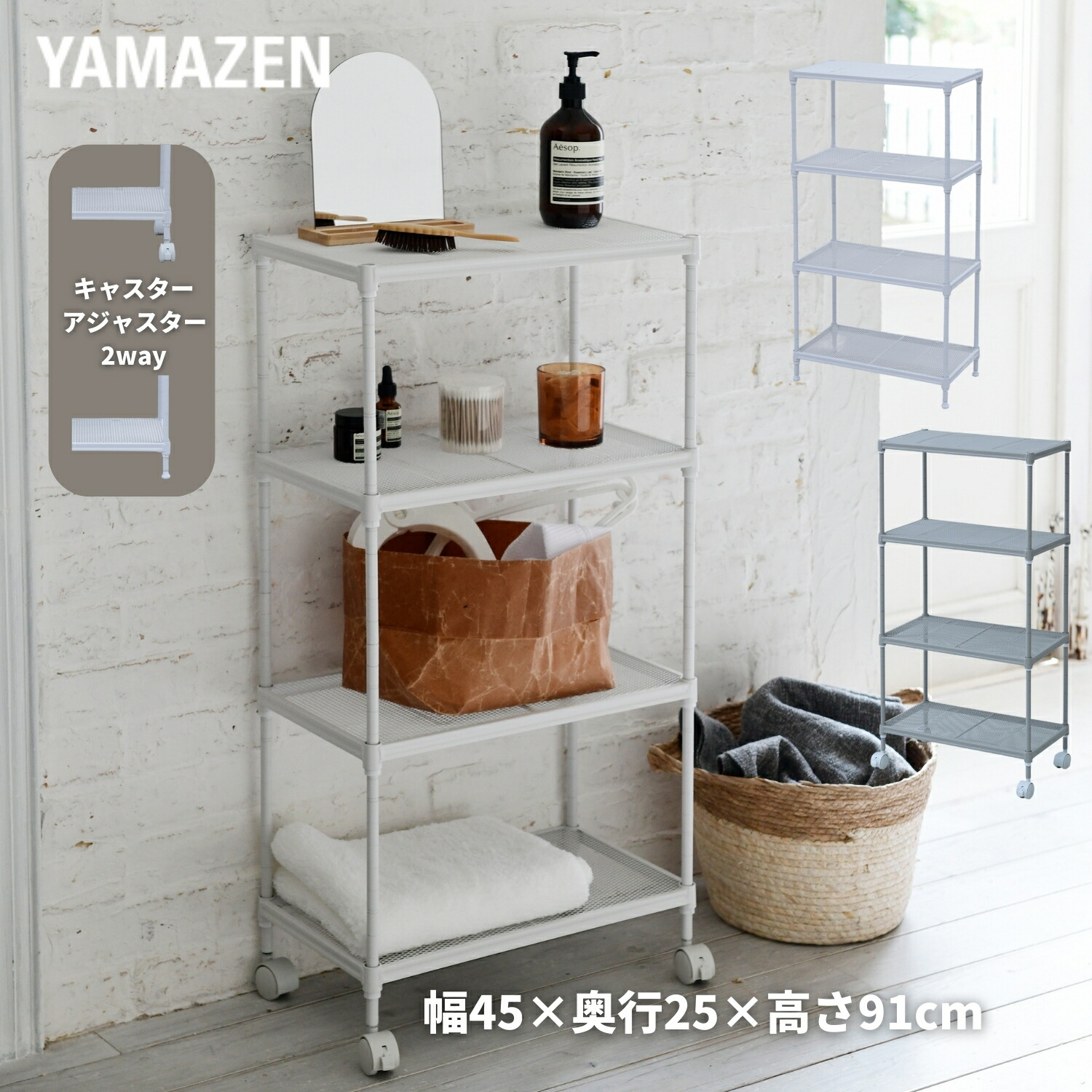 ラック 4段 棚 キャスター付き アジャスター付き 幅45 奥行25 高さ91cm 収納ラック 隙間収納 隙間ラック 隙間 すき間 すきま 収納 キッチン 洗面所 山善 YAMAZEN