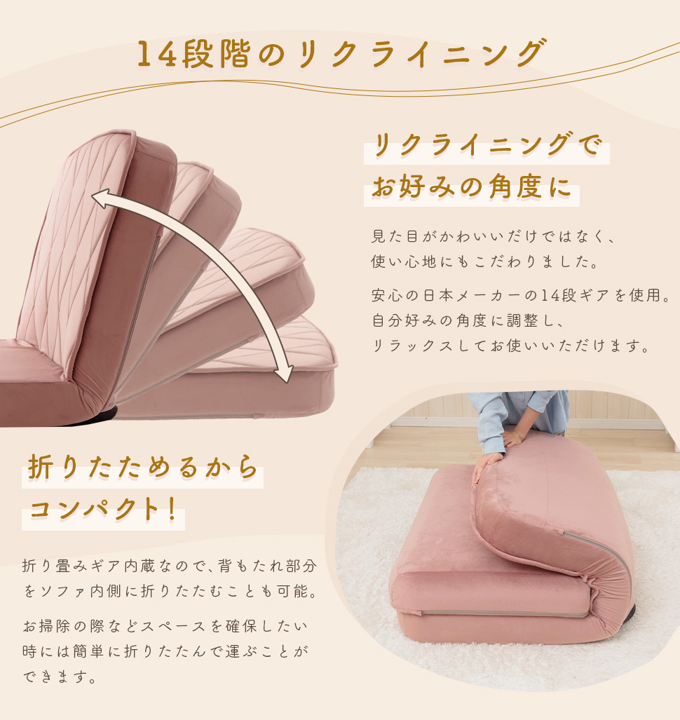 ソファベッド ソファ カウチソファ 3way コンパクト ダイヤモンドキルト ベロア 一人暮らし ワンルーム くすみカラー 上品 高級感 大人かわいい リクライニング