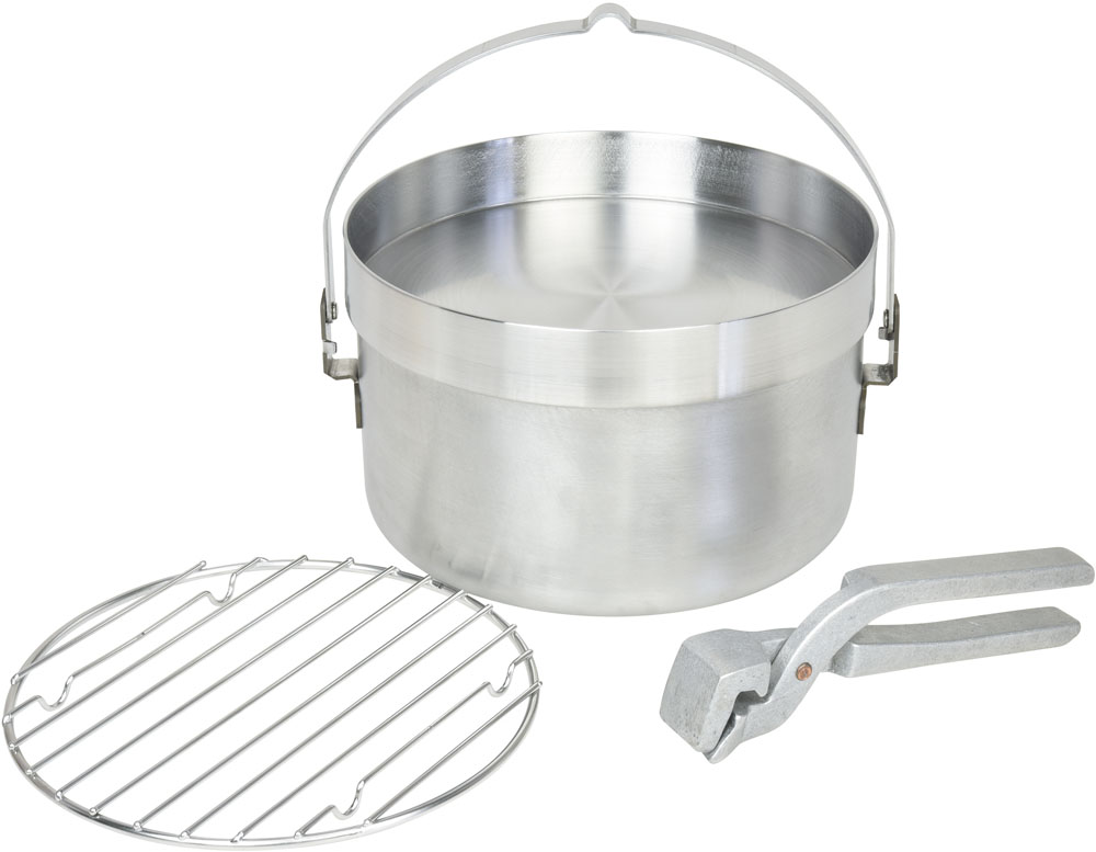 サイズ:鍋約径204×95mm、フタ約径221×36mm、リフター全長約180mm、底網約径190×10mm