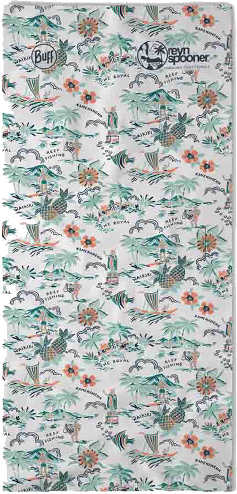 バフ BUFF バフ×レインスプーナー スプーナースタイル BUFF×REYN SPOONER SPOONER STYLE ネックカバー UVカット 夏用 紫外線対策 薄手 556202 アウトドア ハワイ発祥の[レインスプーナー]ブランドとバフとのコラボレーション商品です。ハワイの生活を想起させるプリントデザインに新しい魅力がつまっています。1993年にリリースされたレインスプーナーの人気アーカイブ柄を2つの新しいカラーウェイで再リリースされた柄となります。ハワイの象徴的な場所、観光スポット、アクティビティ(アウトリガー、サーフィン、ワイキキ、カメハメハ王)をモチーフとし私たちの島へようこそというメッセージを込めています。ベース素材はテイストにマッチした通気性良く薄手の涼感素材COOLNET UVで、UVケアもバッチリです。