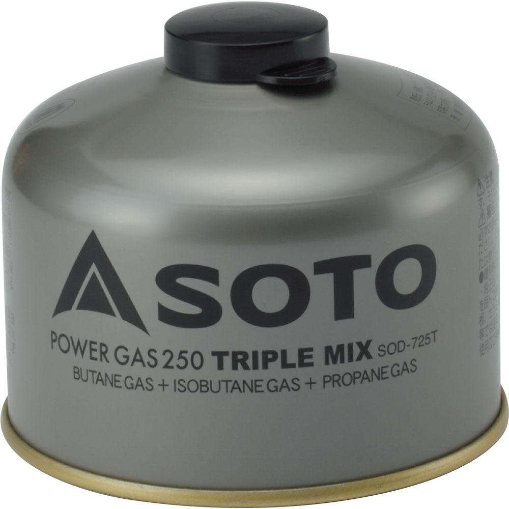 ソト SOTO パワーガス250トリプルミックス SOD-725T 燃料 ガスカートリッジ OD缶 イソブタン ノルマルブタン プロパン 登山 トレッキング キャンプ 災害対策 SOD725T アウトドア プロパン、イソブタン、ノルマルブタン配合のパワーガス。刻一刻と状況を変える自然環境にも対応するパワーガスです。SOTO製品のOD缶専用燃料器具を支えるガス燃料です。