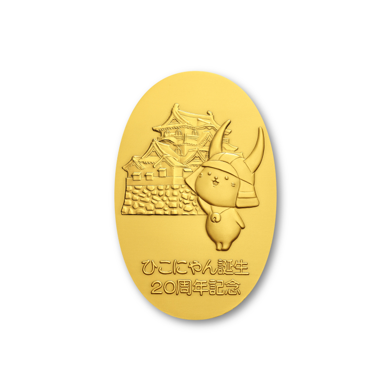 創業明治30年松本徽章工業が謹製。ひこにゃん誕生20周年を記念した純金、純銀製小判のページです。